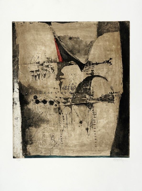 1) Le grand chevaux. 1957. Acquaforte. mm 680x462. Foglio: mm 760x560. Firma a matita in basso a destra e tiratura in basso a sinistra. Es 27/50. 2) Oiseau. 1961. Acquaforte. mm 518x445. Foglio: mm 760x560. Firma a matita in basso a destra, tiratura in basso a sinistra e, sotto, timbro a secco. Targhetta con i dati editoriali dell'opera applicata al verso, all'angolo inferiore sinistro. Iscrizioni varie a matita al verso. Es. 25/95. 3) Soleil bleu. 1981. Acquaforte. mm 767x575. Foglio: mm 915x635. Firma a matita in basso a destra e "E.A" in basso a sinistra. 4) Sans titre. Litografia. mm 380x280.