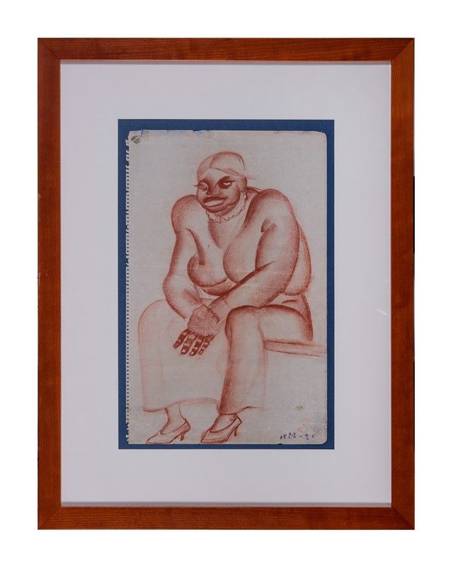 Sanguigna su carta. mm 415x265. Doppio monogramma e data in basso a destra. Etichetta contenente dati anagrafici dell'artista applicata all'angolo superiore sinistro del verso.