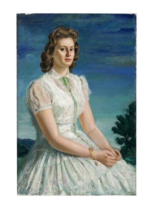 Olio su tela. cm 95x70. Firmato in basso a destra. Luigi Bracchi era principalmente noto come pittore paesaggista. Tra le sue opere più apprezzate però figurano anche i ritratti d'attrici dell'epoca, come il dipinto dedicato a Gina Lollobrigida, non escludiamo la possibilità che anche Il soggetto di questo dipinto sia di un personaggio dello spettacolo anni '50.