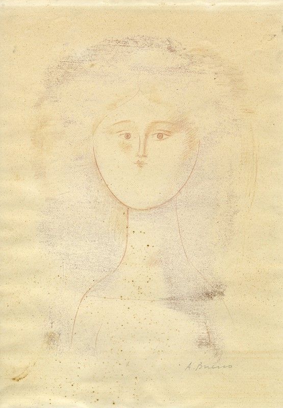 Carboncini e pastelli colorati su carta. Firma a matita in basso a destra. Timbro a inchiostro blu di Saletta Conti con firma della stessa all'angolo inferiore destro del verso.