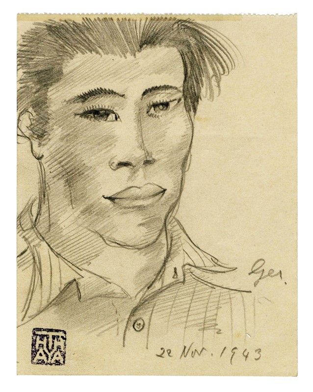 Matita su carta. mm 137x105. Timbro d'artista ad inchiostro nero in basso a sinistra. Datato "22 Nov. 1943" a matita in basso a destra. Nome della persona ritratta iscritto a matita al margine destro del foglio.