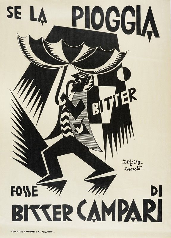 Litografia. mm 700x500. Firma e "Rovereto" in lastra in basso a destra e "Davide Campari&C. Milano" in basso a sinistra.