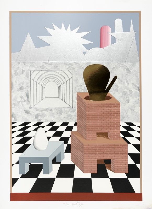 Serigrafia con applicazioni a collage. mm 730x510. Foglio: mm 810x610. Firma e tiratura a matita in basso al centro. Es. 34/100.