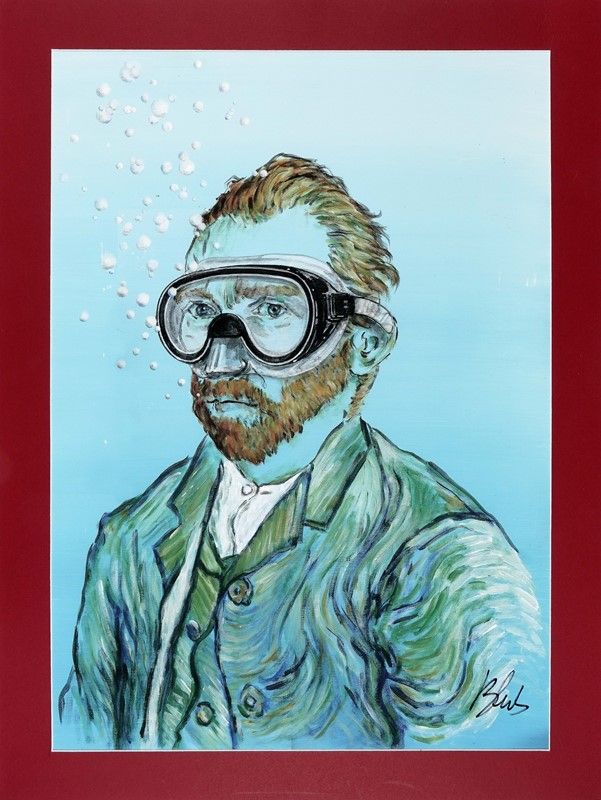 Offset. mm 690x490. Firma a pennarello nero in basso a destra. Esposizioni: Fattori L. (a cura di), Blub #lartesanuotare, Candelara, 8 agosto-15 settembre 2019.