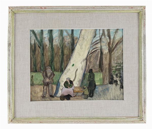 Olio su cartone. cm 26x34. MASINI, XLVI. Timbro ad inchiostro nero di H. Schmincke al verso. Opera presente nel catalogo d'artista a cura di Valeria Masini edito a Firenze nel 1988. Dipinto esposto anche nella mostra Il Vaglio del 1967 a Firenze.