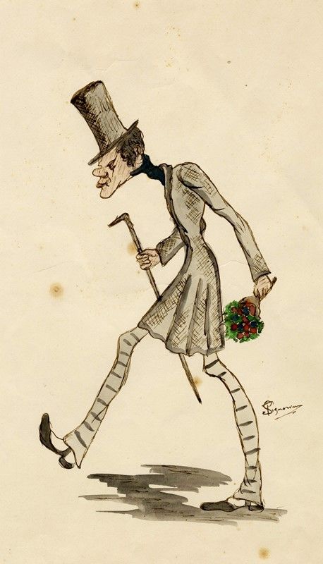 Uomo con bastone e bouquet.
