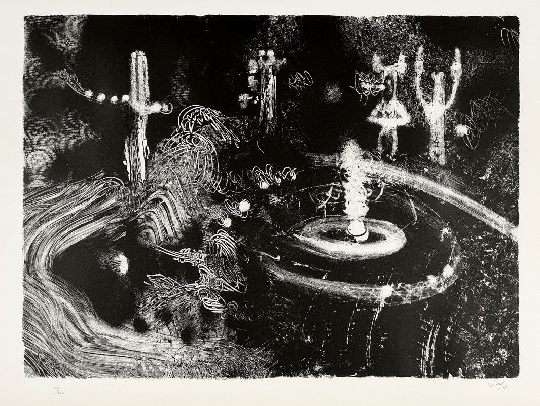 Litografia. mm 495x690. Foglio: mm 570x780. Firmata a matita in basso a destra, tiratura in numeri romani in basso a sinistra. Timbro a secco de' il Bisonte in basso a destra. Prima incisione di 6 proveniente dalla cartella Le Acque d'Arno, realizzata sui testi di Dante Alighieri in commemorazione della disastrosa alluvione fiorentina. Es. XIII/XXV.
