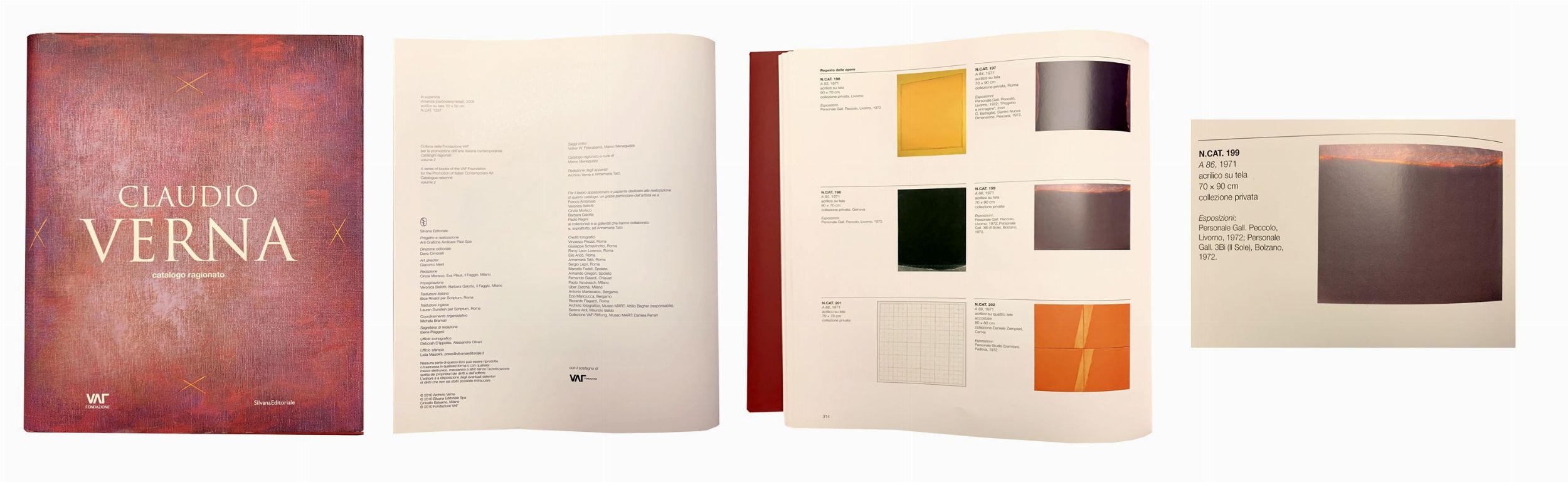 1971 Firma, data, titolo, numerazione, tecnica Claudio Verna, '71, A 86, n. cat. 199, acrilico (al retro)