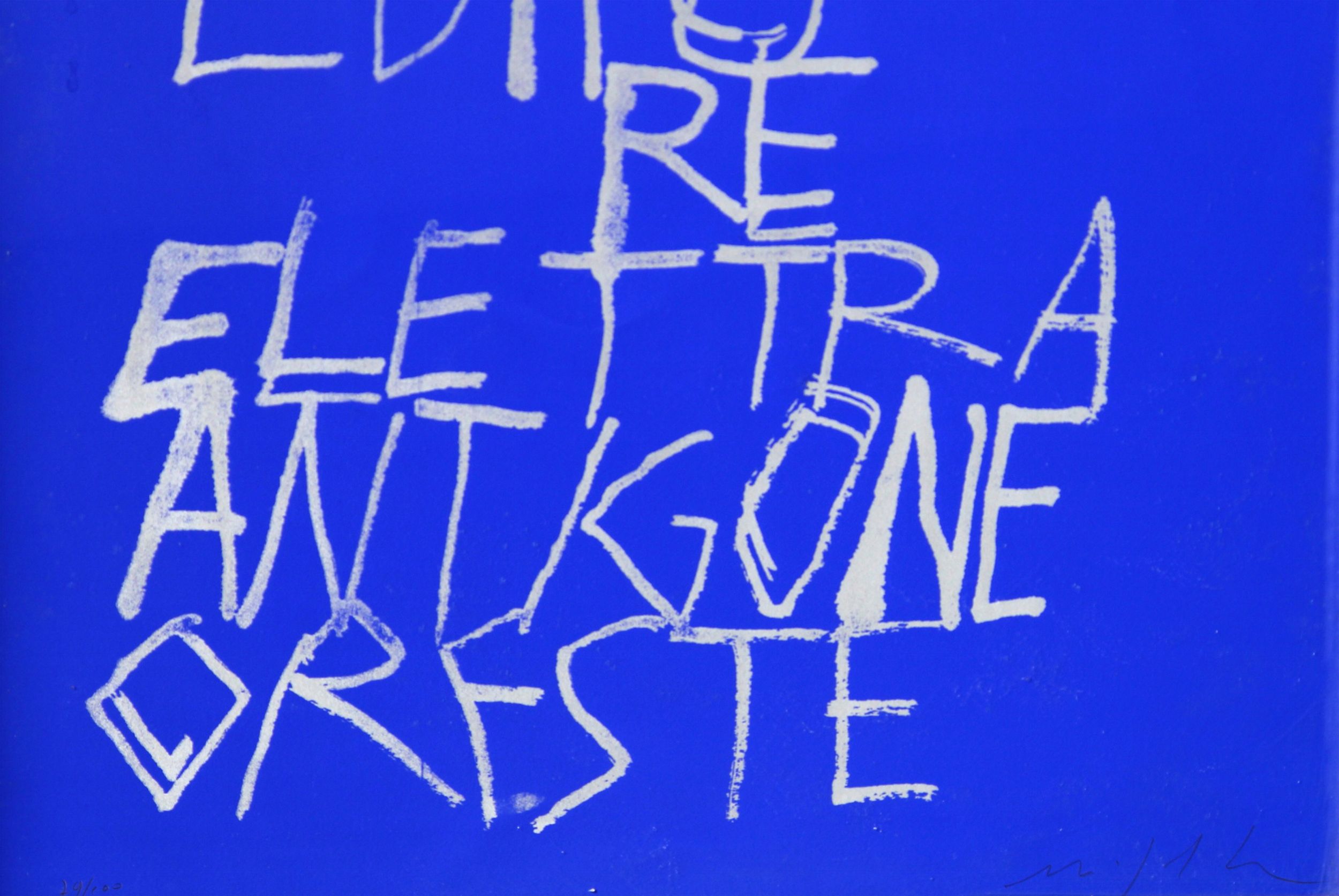 Opera facente parte della cartella di 4 serigrafie Le quattro tragedie nelle serigrafie di Mimmo PaladinoEdizione di 100 esemplariEsemplare n. 79Numerazione 79/100 (in basso a sinistra);firma Paladino (in basso a destra)