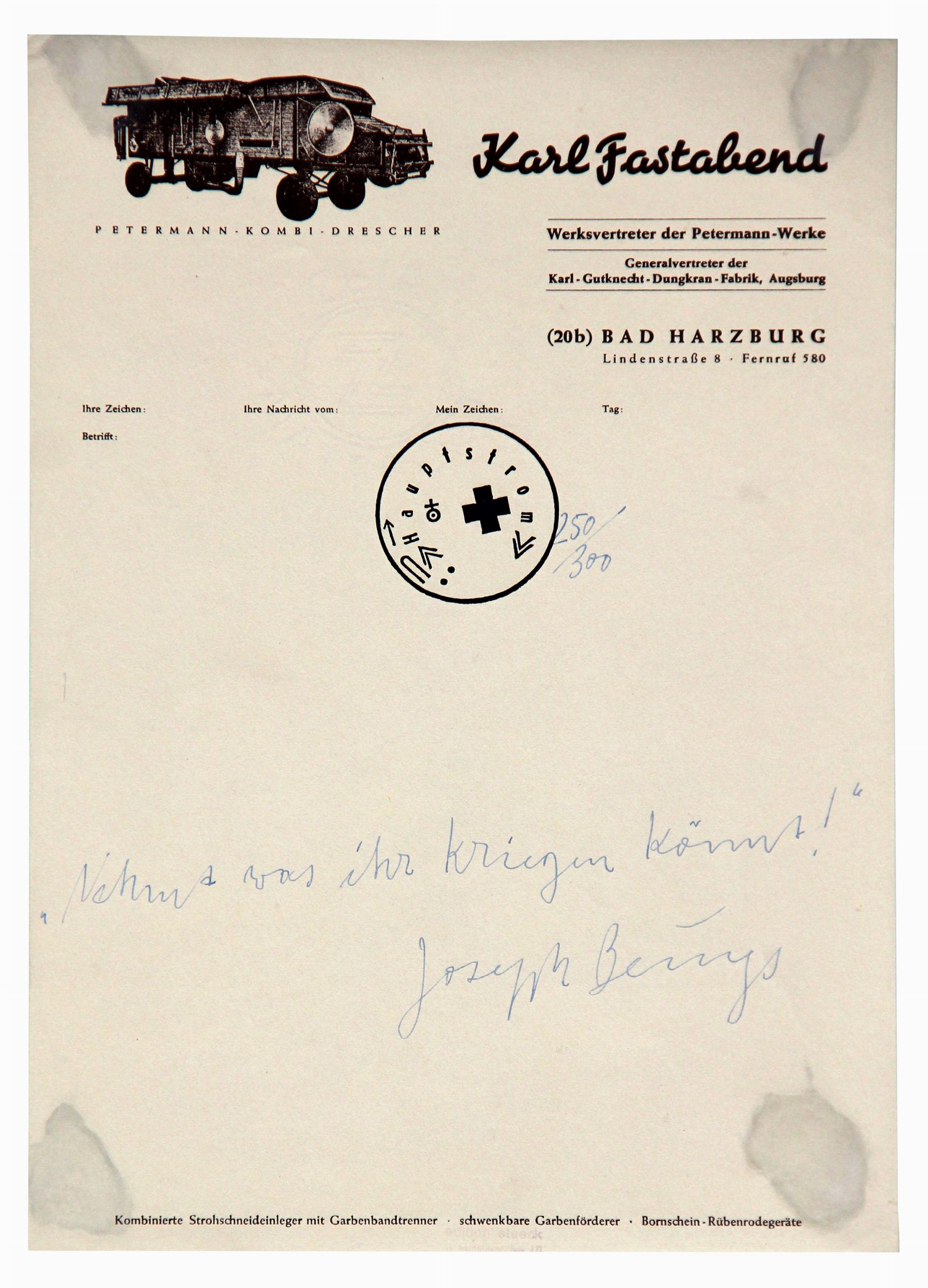 titolo, firma Nehmt was ihr kriegen könnt!, Joseph Beuys (in basso al centro)