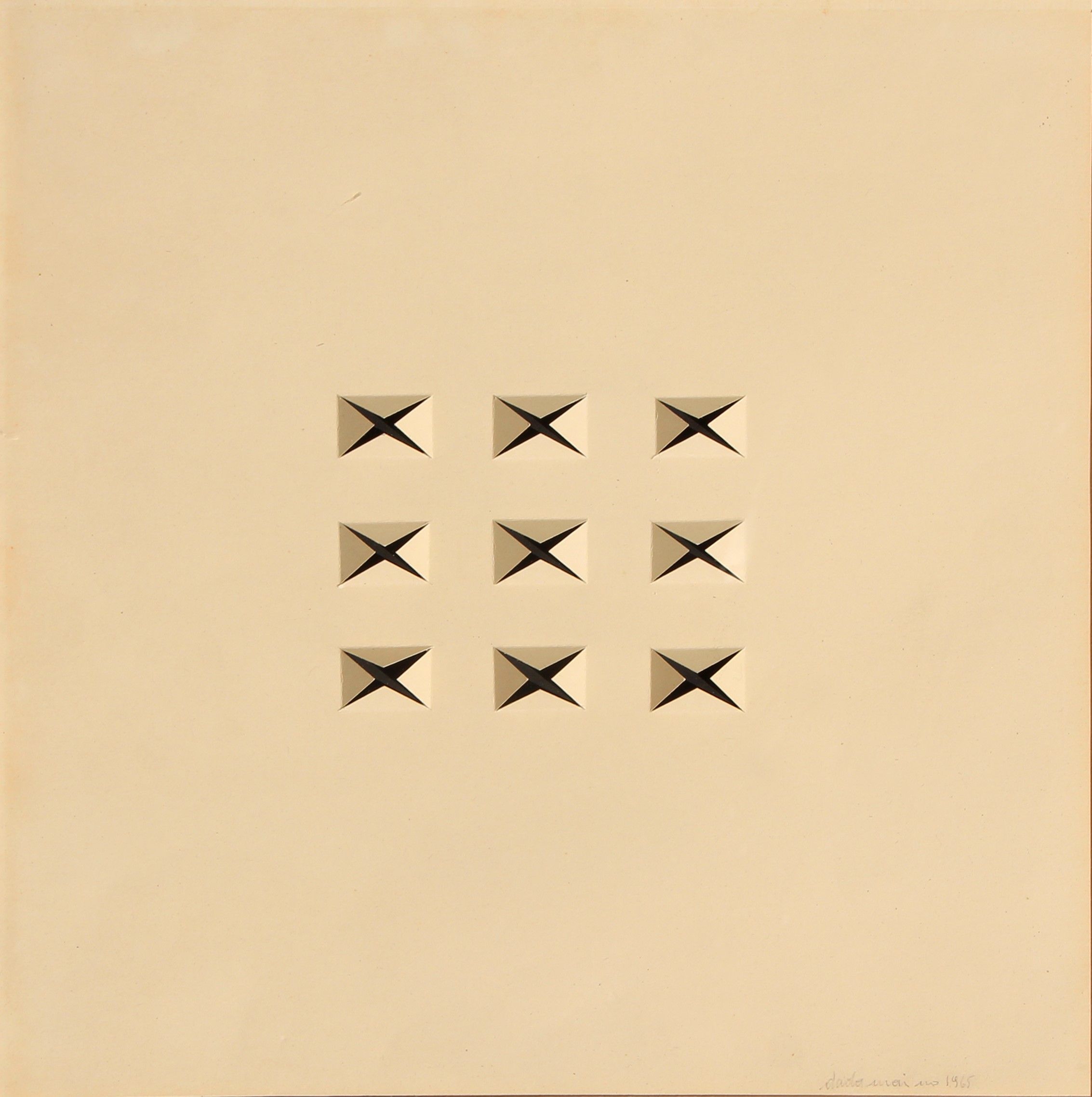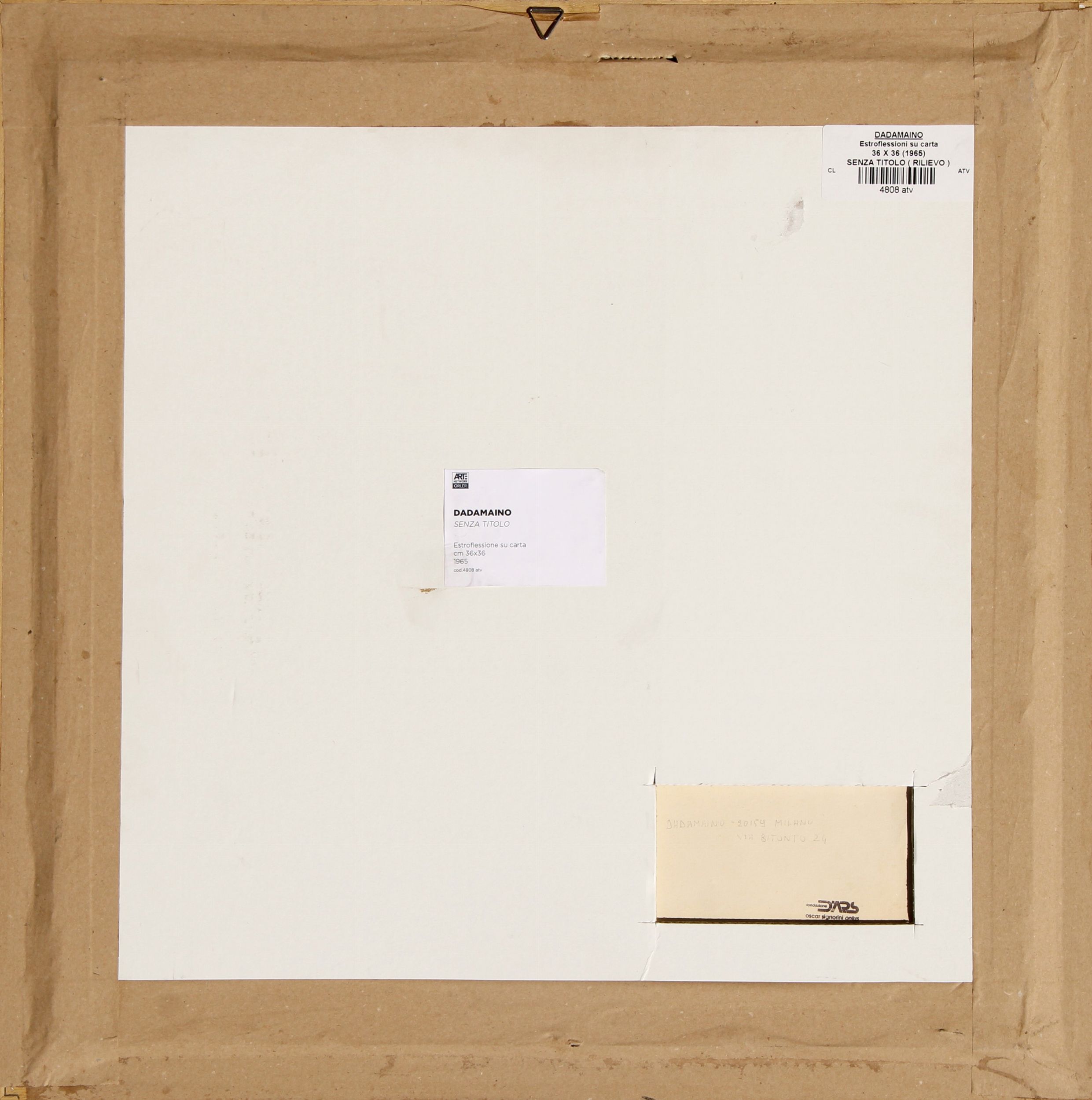 Firma, data Dadamaino, 1965 (in basso a destra)Firma, luogo Dadamaino, 20159 Milano Via Bitonto 24;timbro di Fondazione D'Ars, Milano (al retro)