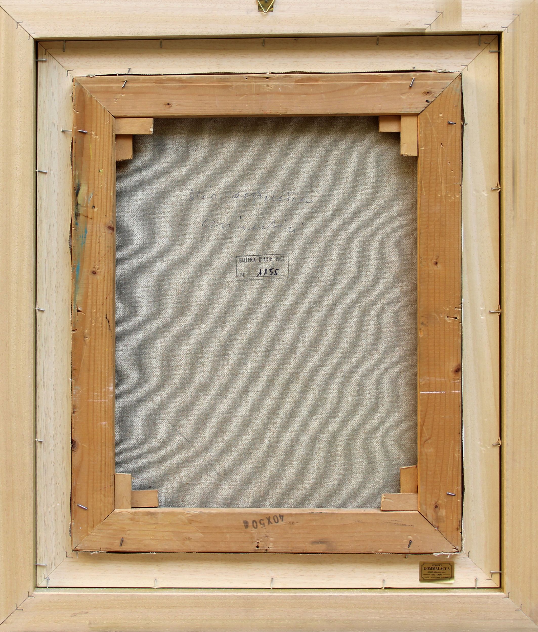 Firma Brindisi (in basso a destra)Dichiarazione di autenticità, firma Olio autentico, Brindisi;timbro di Galleria Pace, Milano (al retro)