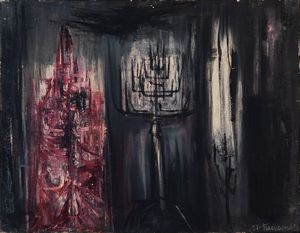 tempera grassa su tela, cm. 85x105 1962 firma e data in basso a destra, firma e titolo al retro