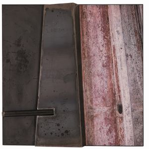 polimaterico su tavola, cm. 50x50 1998 firma data titolo e timbro dell'Autore al retro