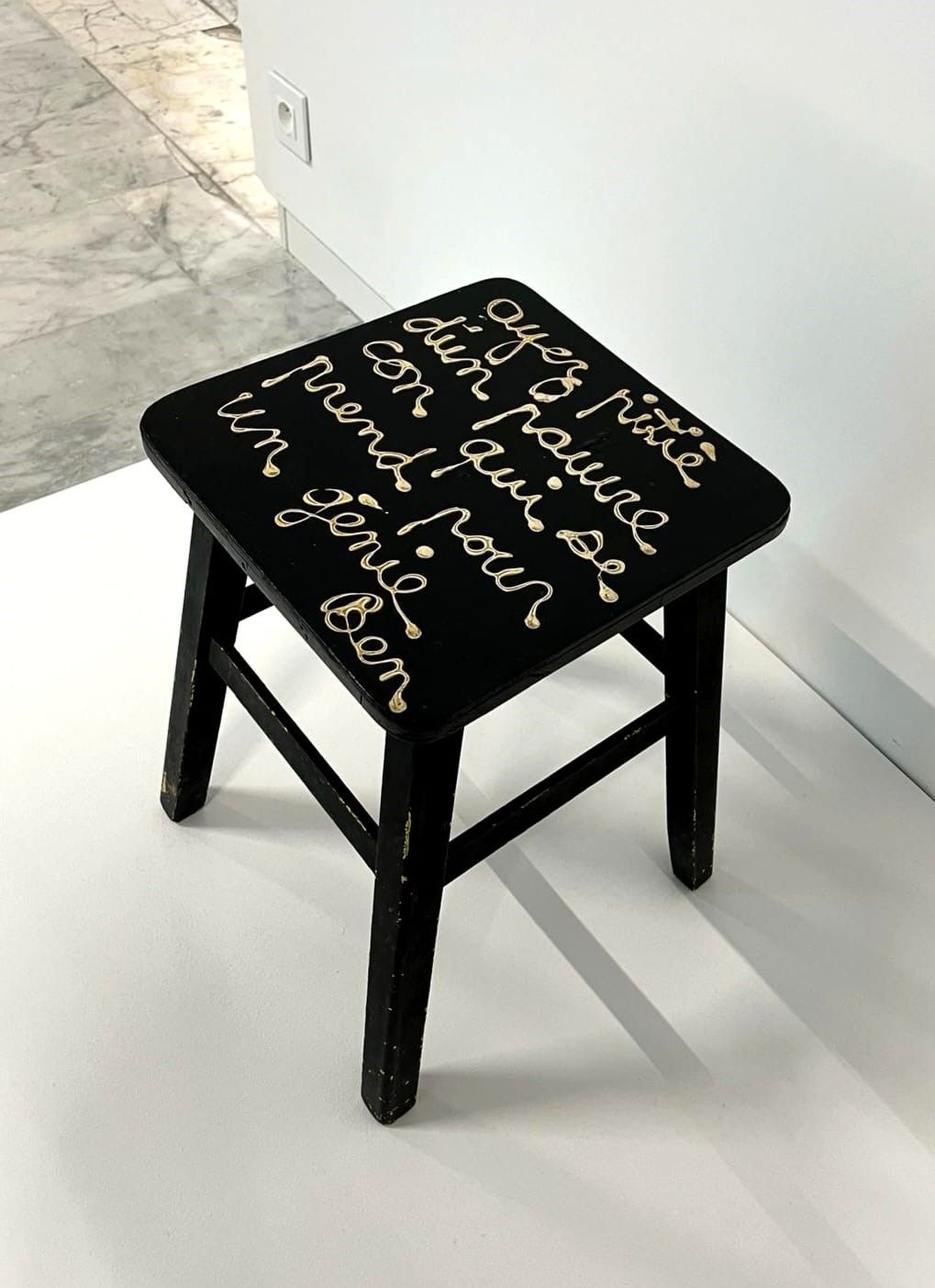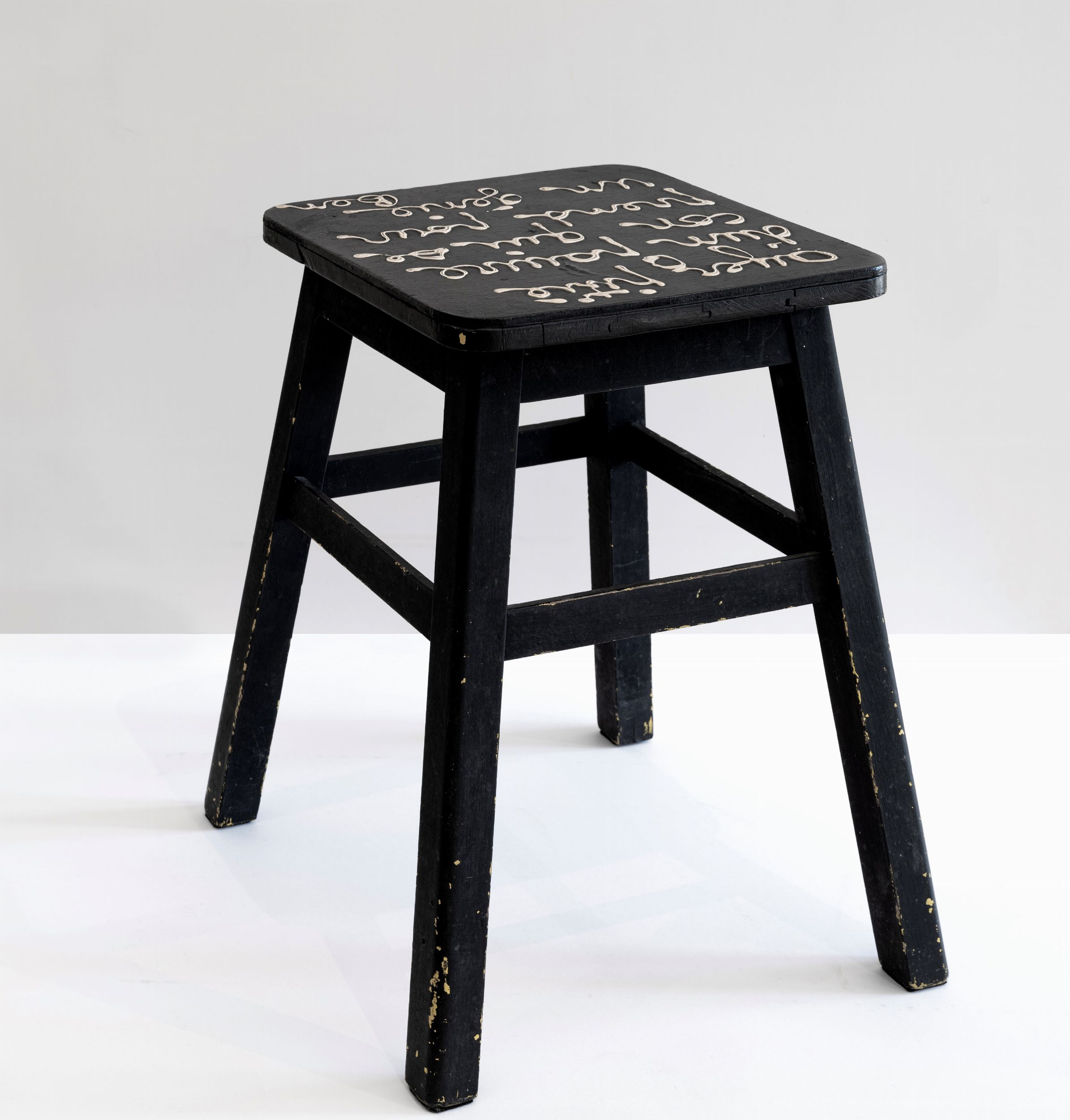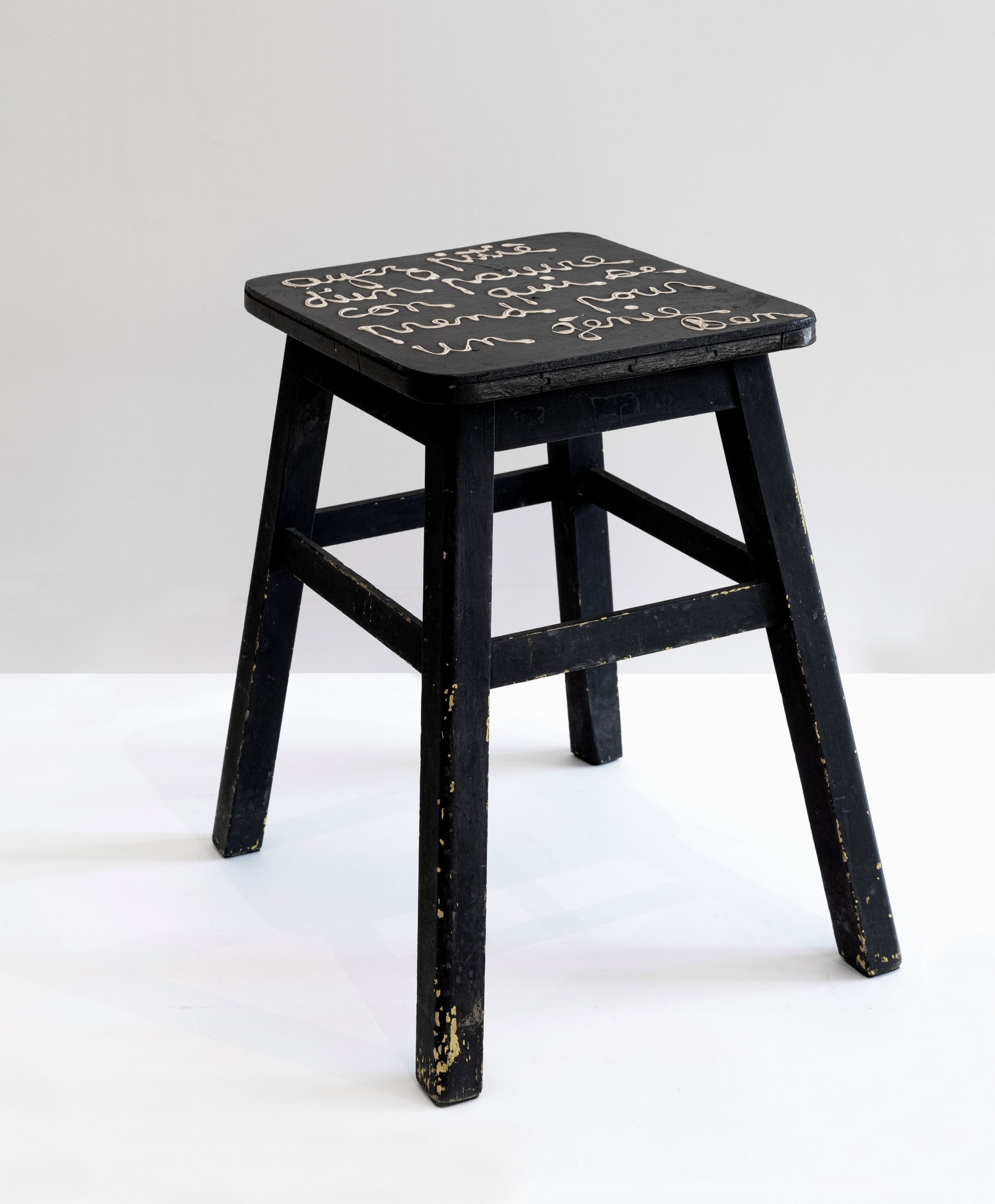 acrilici su sgabello in legno, cm. 44,3x35,1x35,1