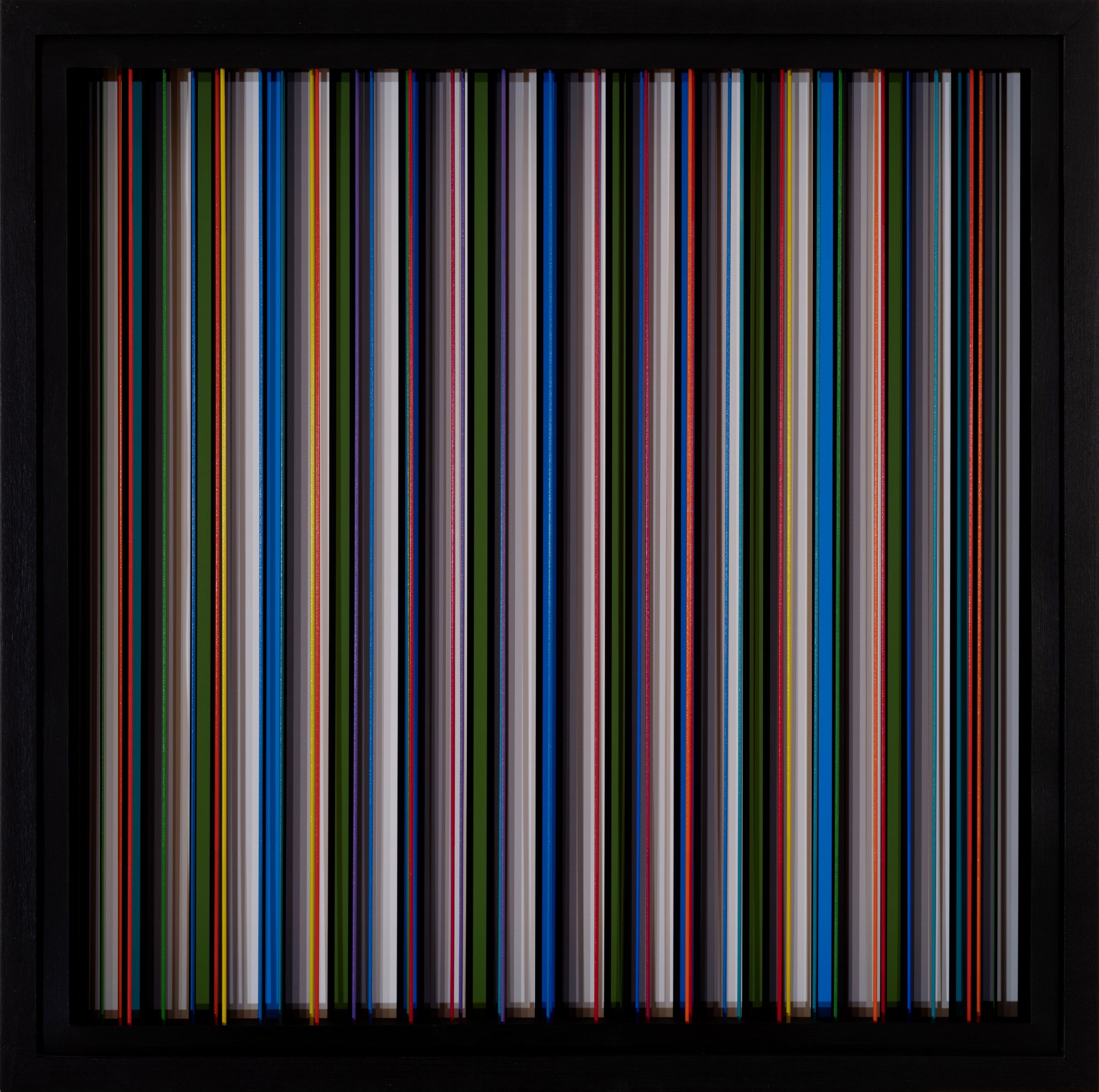 serigrafia su cartone e fili colorati in plastica es. 6/20, cm. 53x53x7