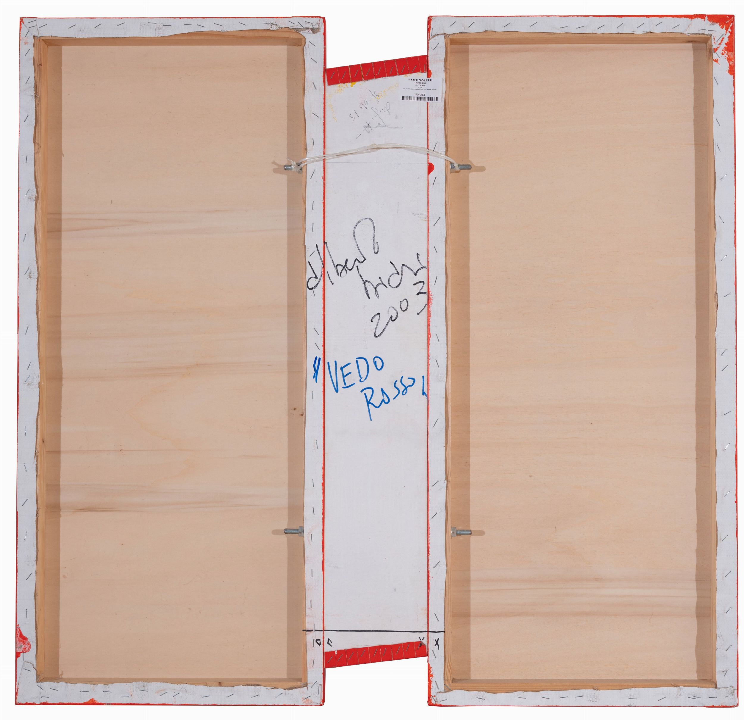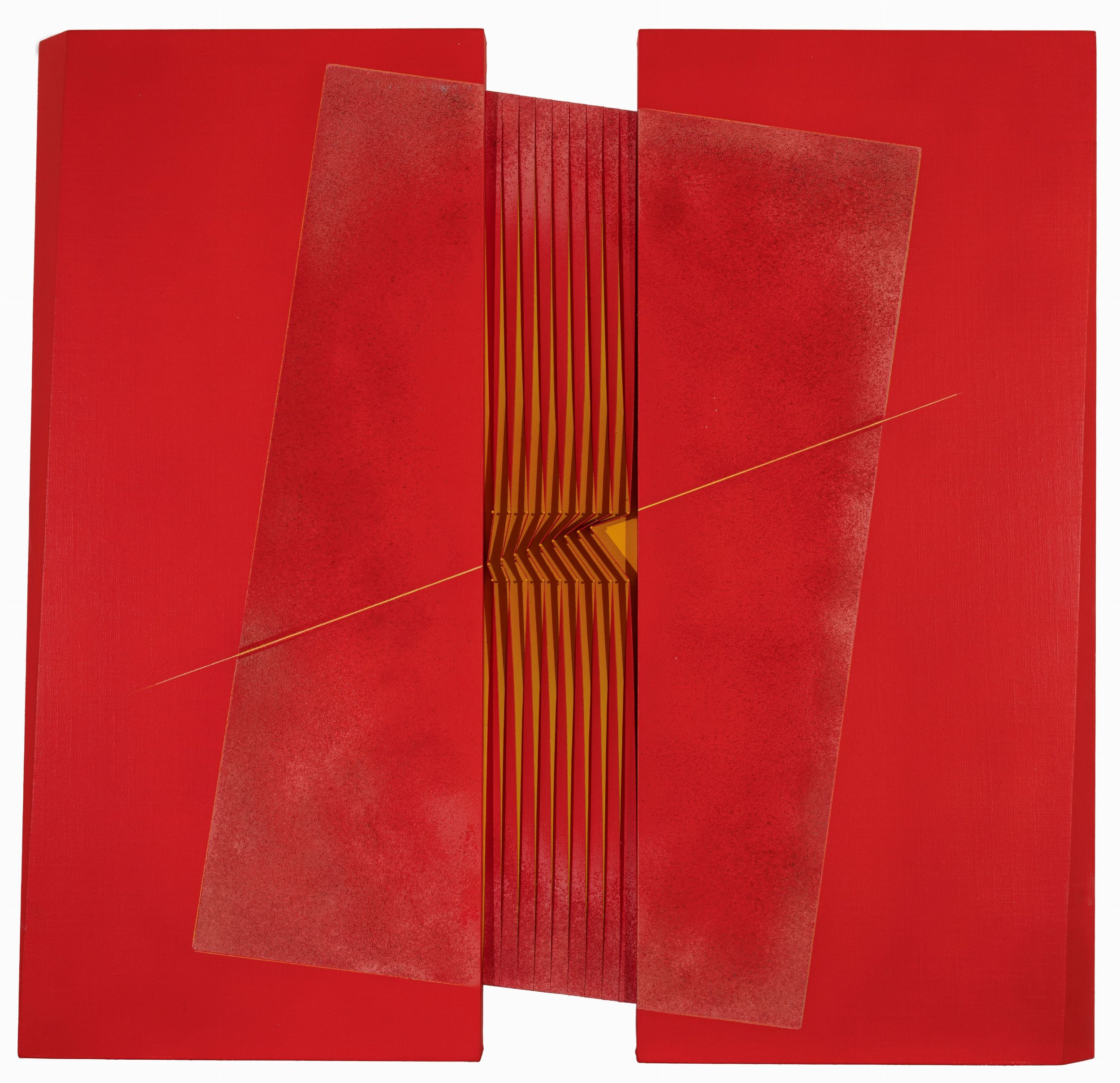 assemblaggio (acrilici, tela e tavola), cm. 94x90