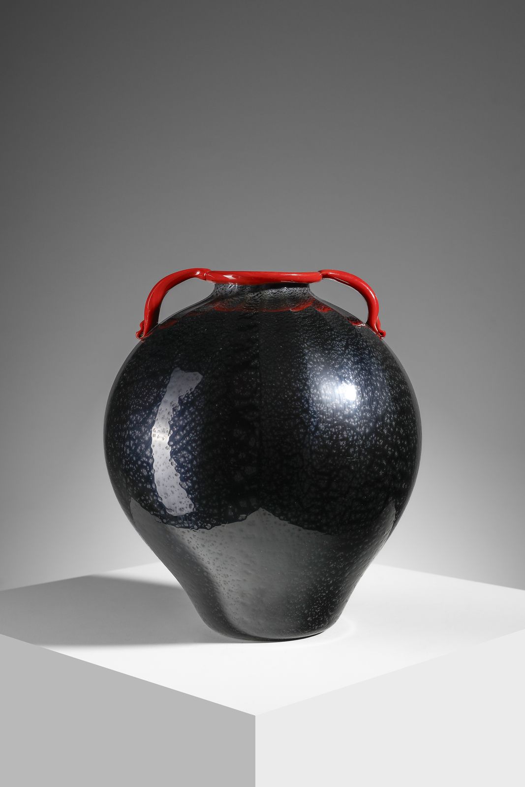 attribuito. Vaso biansato con corpo leggermente costolato, Murano