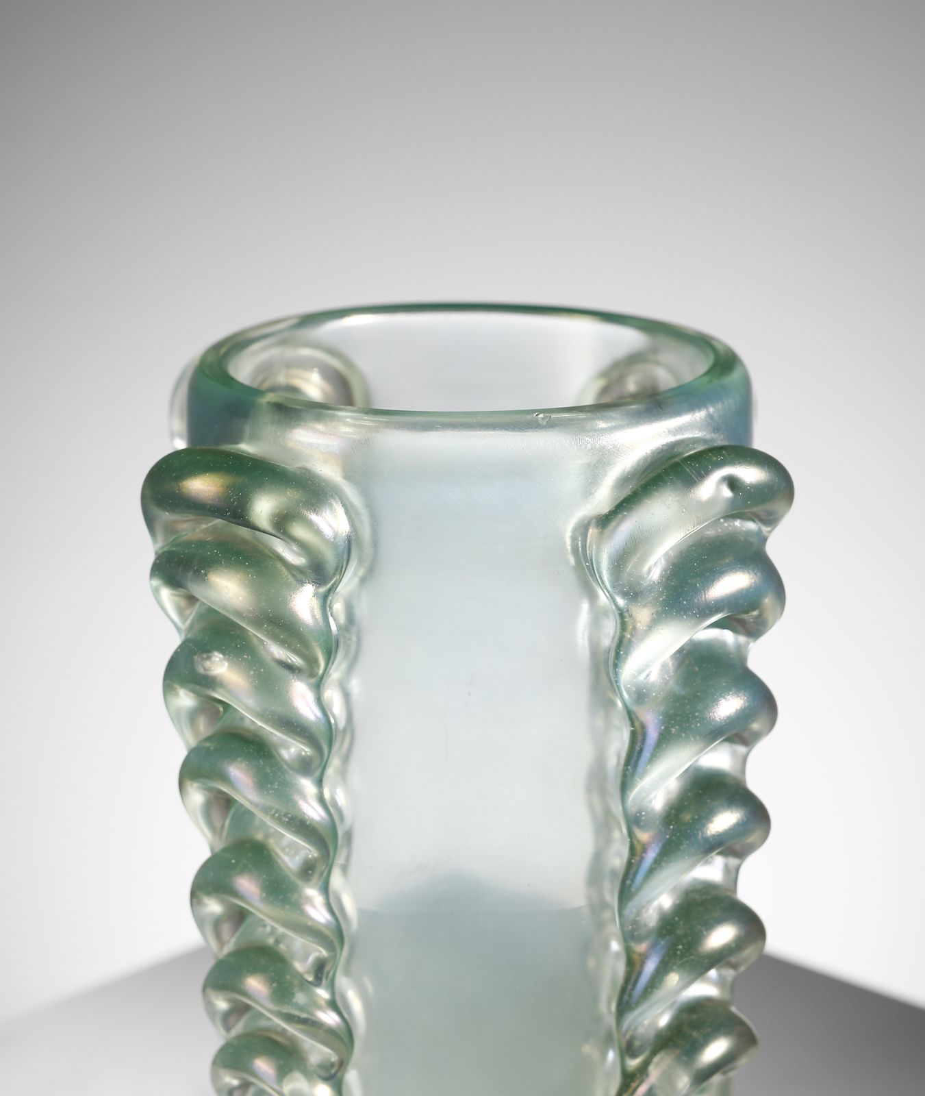 attribuito. Vaso cilindrico decorato su quattro lati da morise per VAMSA, Murano