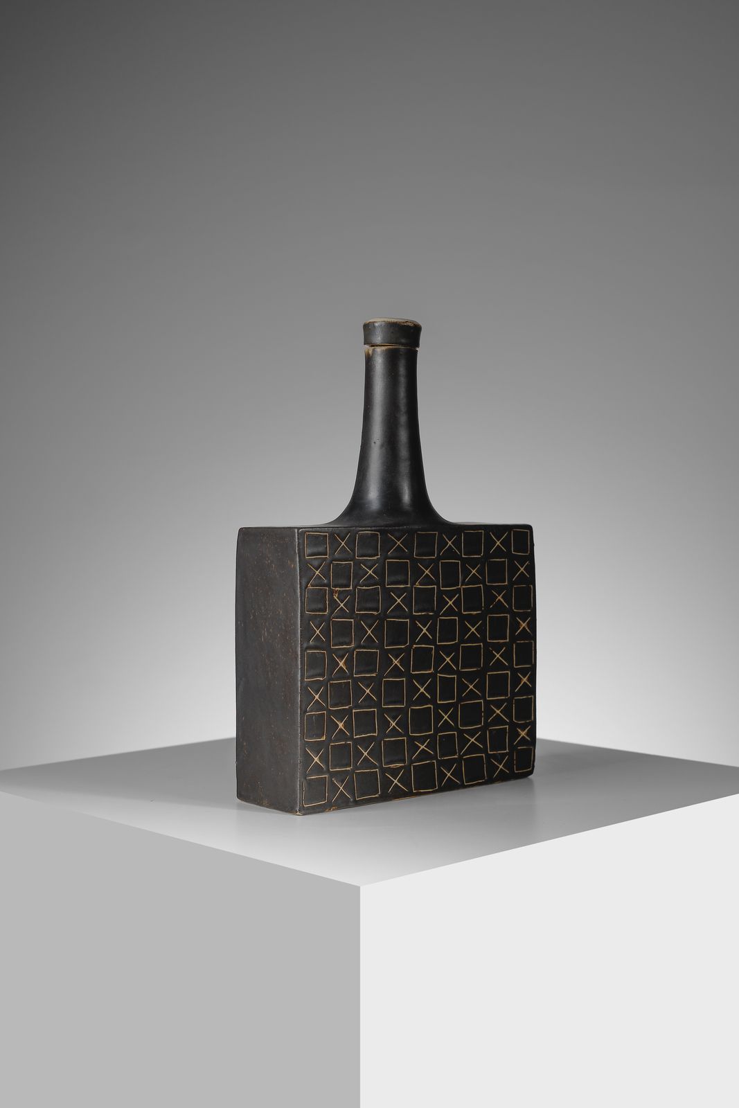 Bottiglia con decori geometrici graffiti e brocca