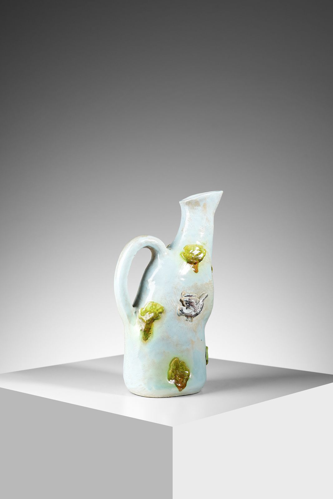 Brocca decorata con volatili e foglie a rilievo, Faenza