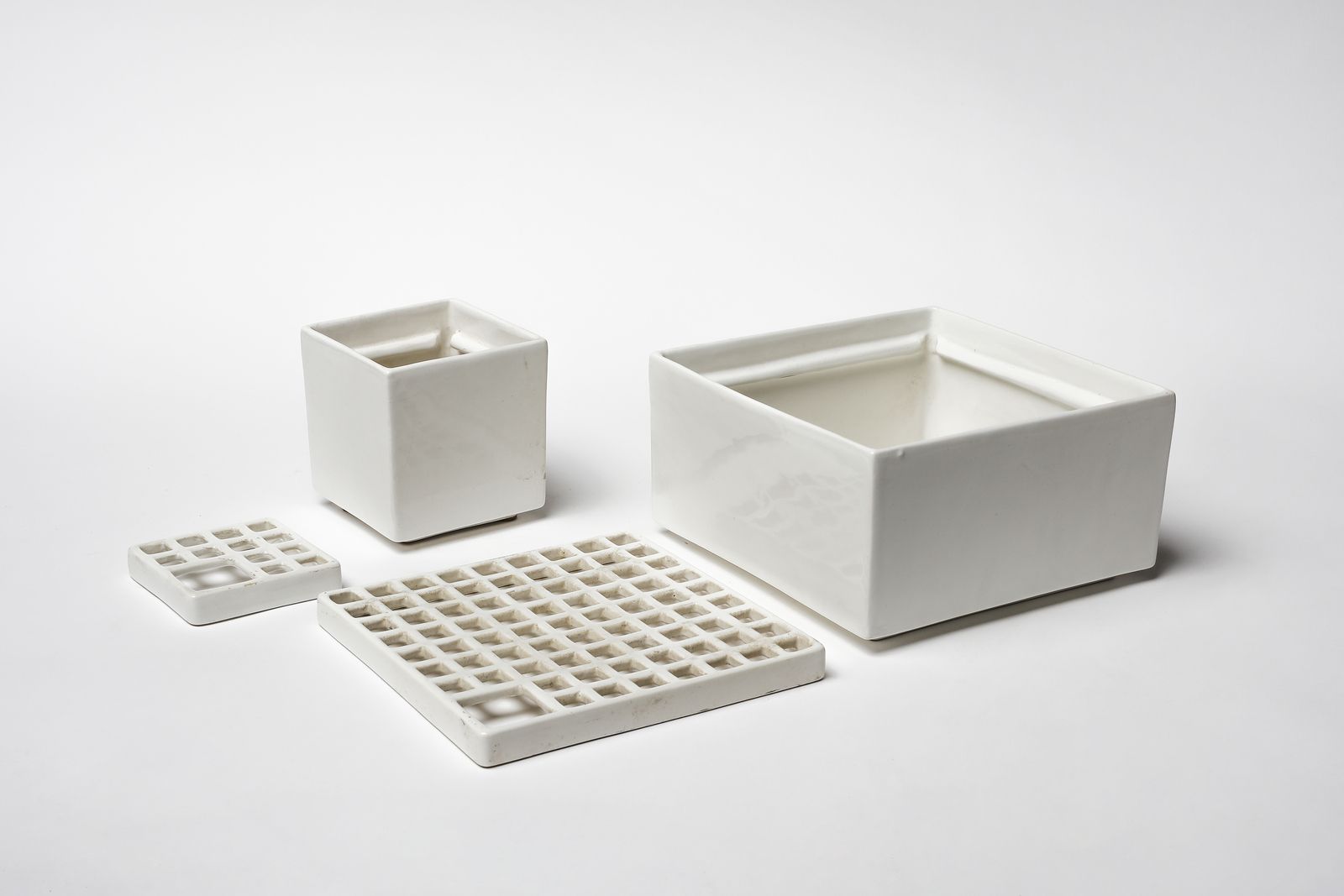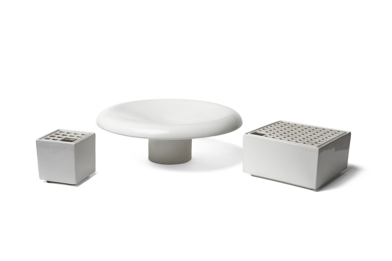 Anni Settanta.Marcati sotto la base.Dimensioni: 13 x 12 x 12 cm. 13 x 24 x 24 cm. 16 x 46, 5 cm