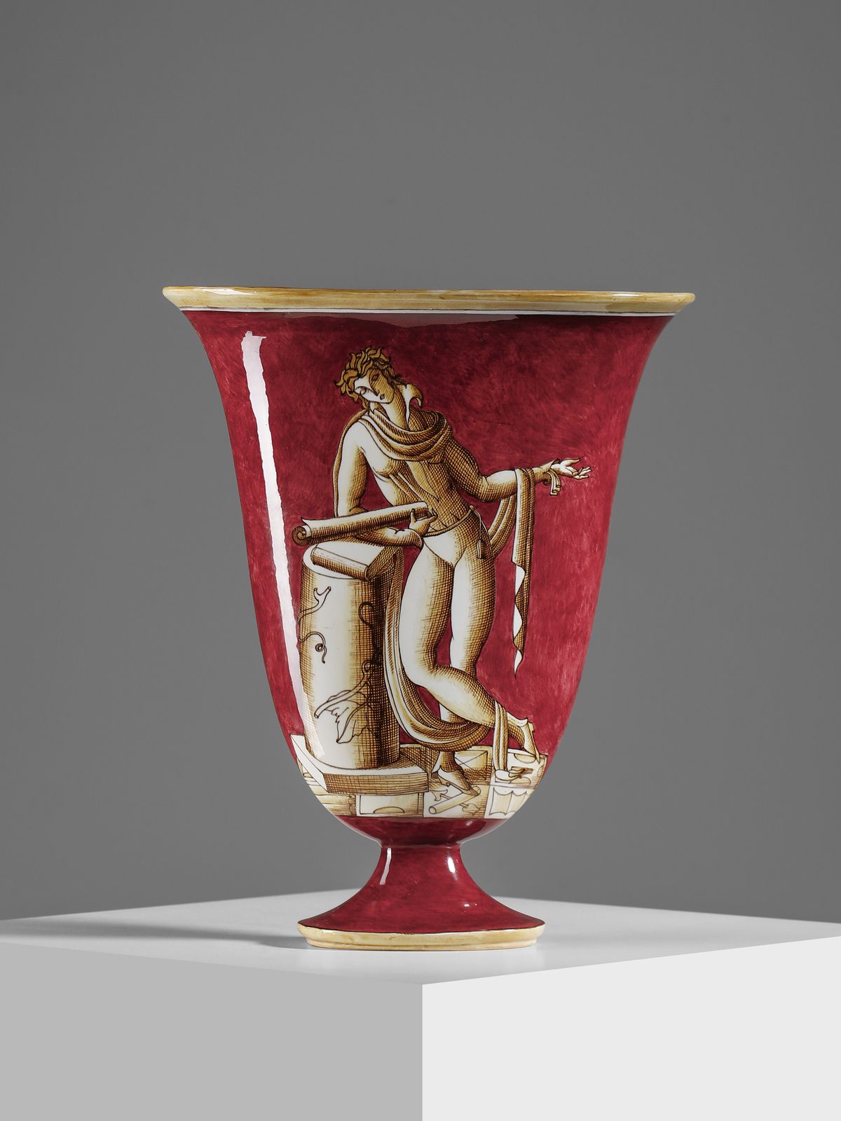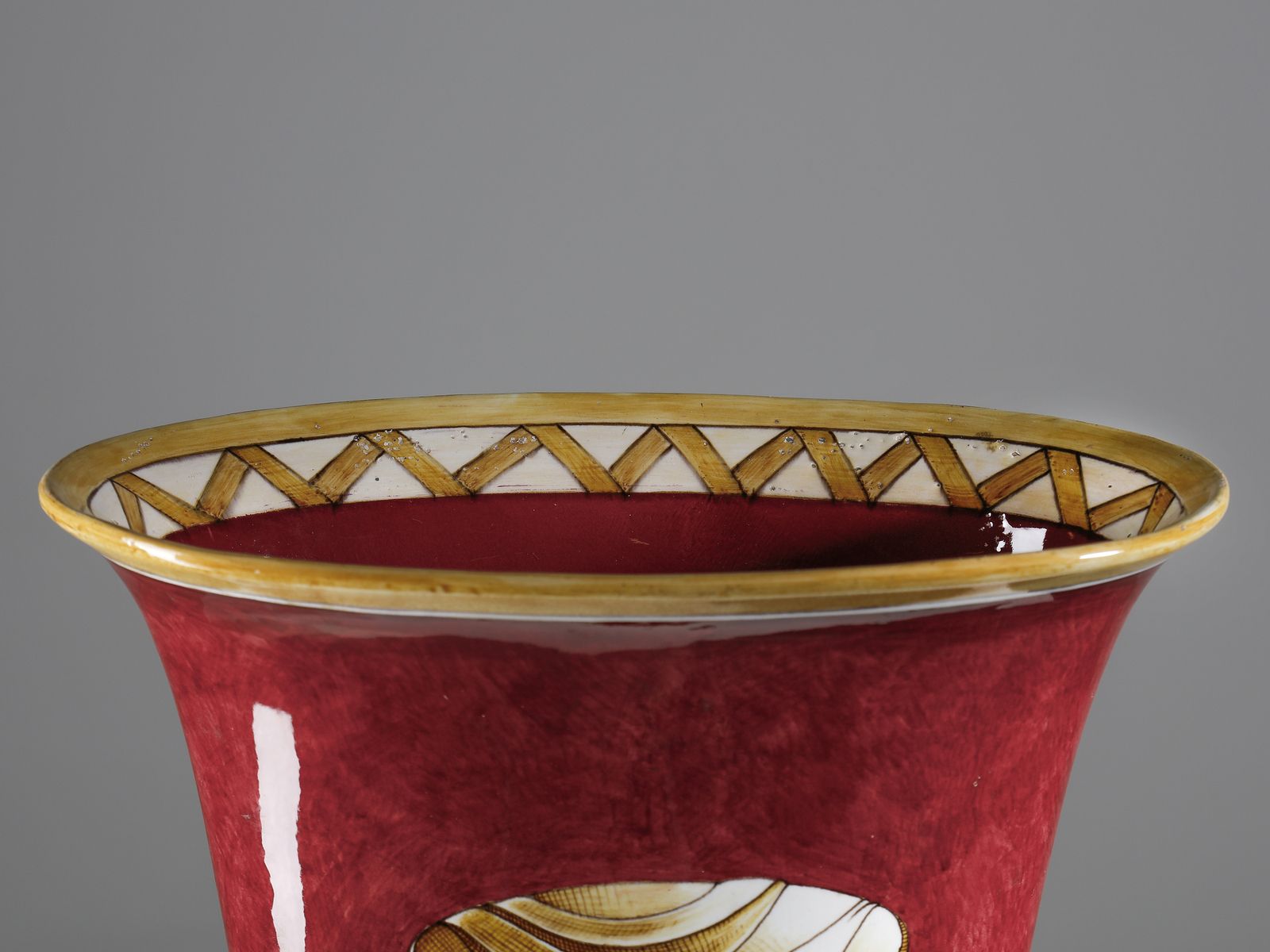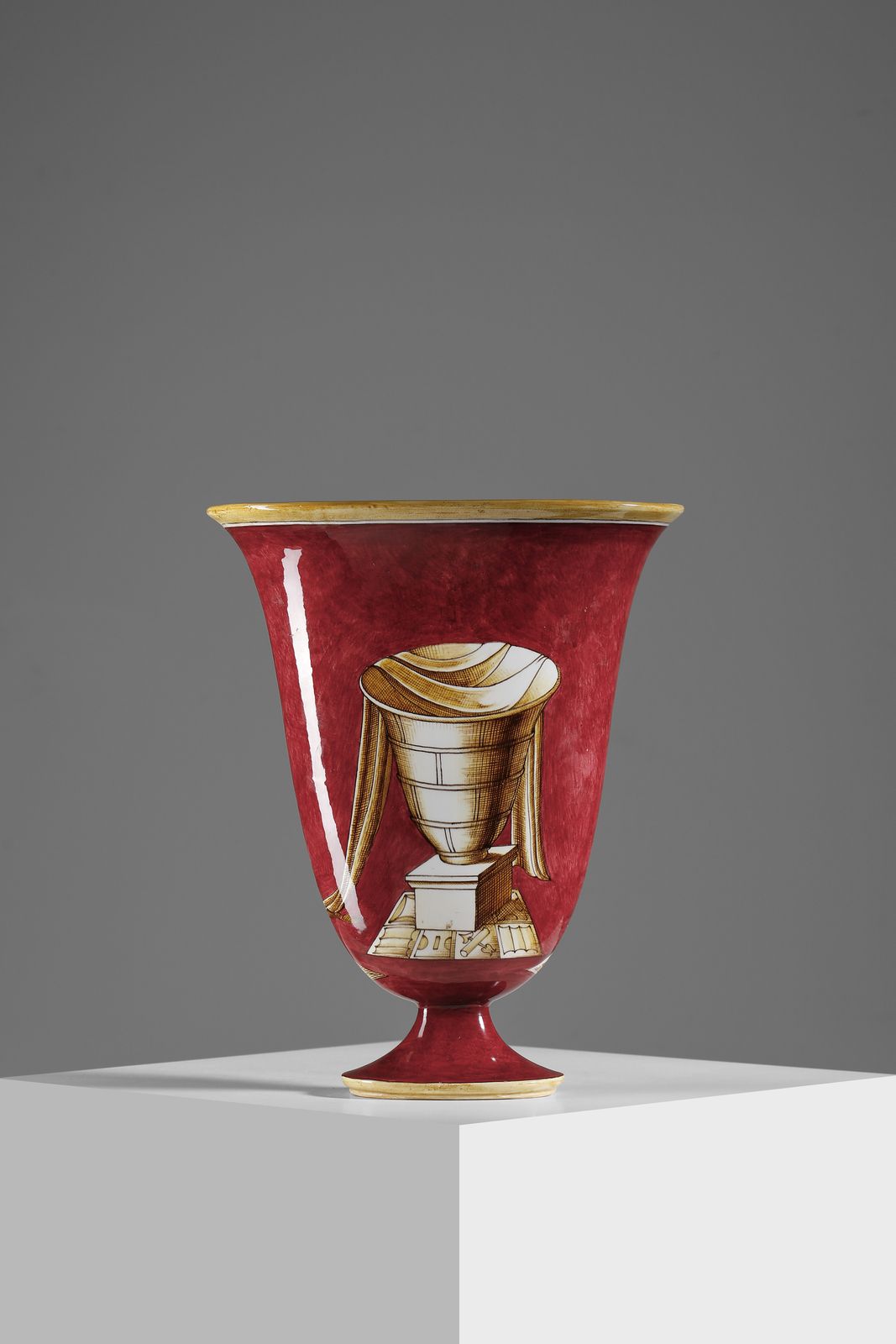 1924ca. Forma del vaso n. 1030. Inscritto in nero sotto la base 'Ginori' con il monogramma della corona, il numerale '1030' e la firma 'Gio Ponti'. Bibliografia: L. Manna, Gio Ponti. Le maioliche, Biblioteca di via Senato, Milano 2000, p. 110-111