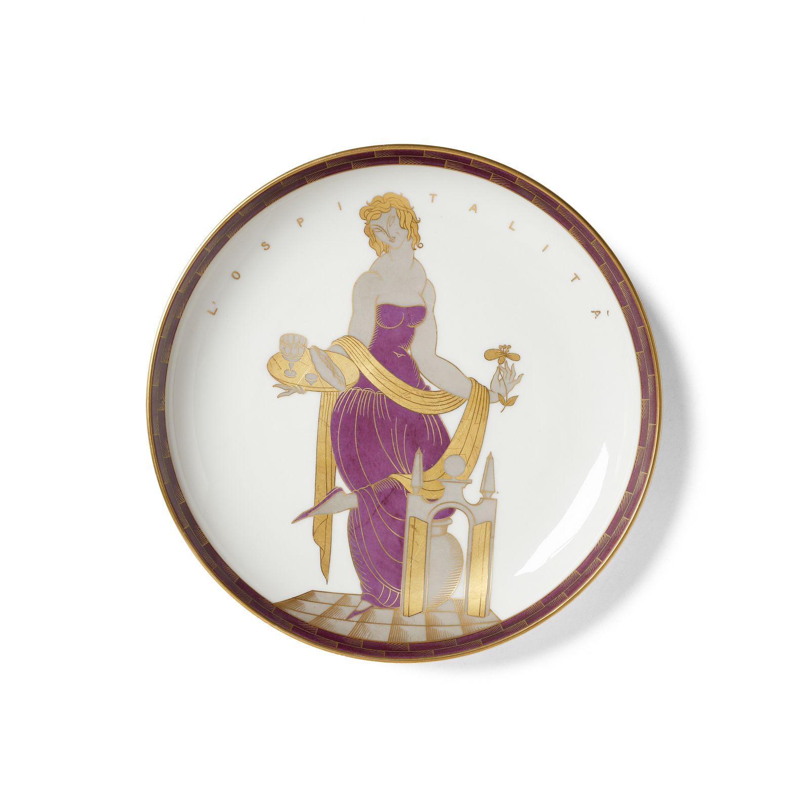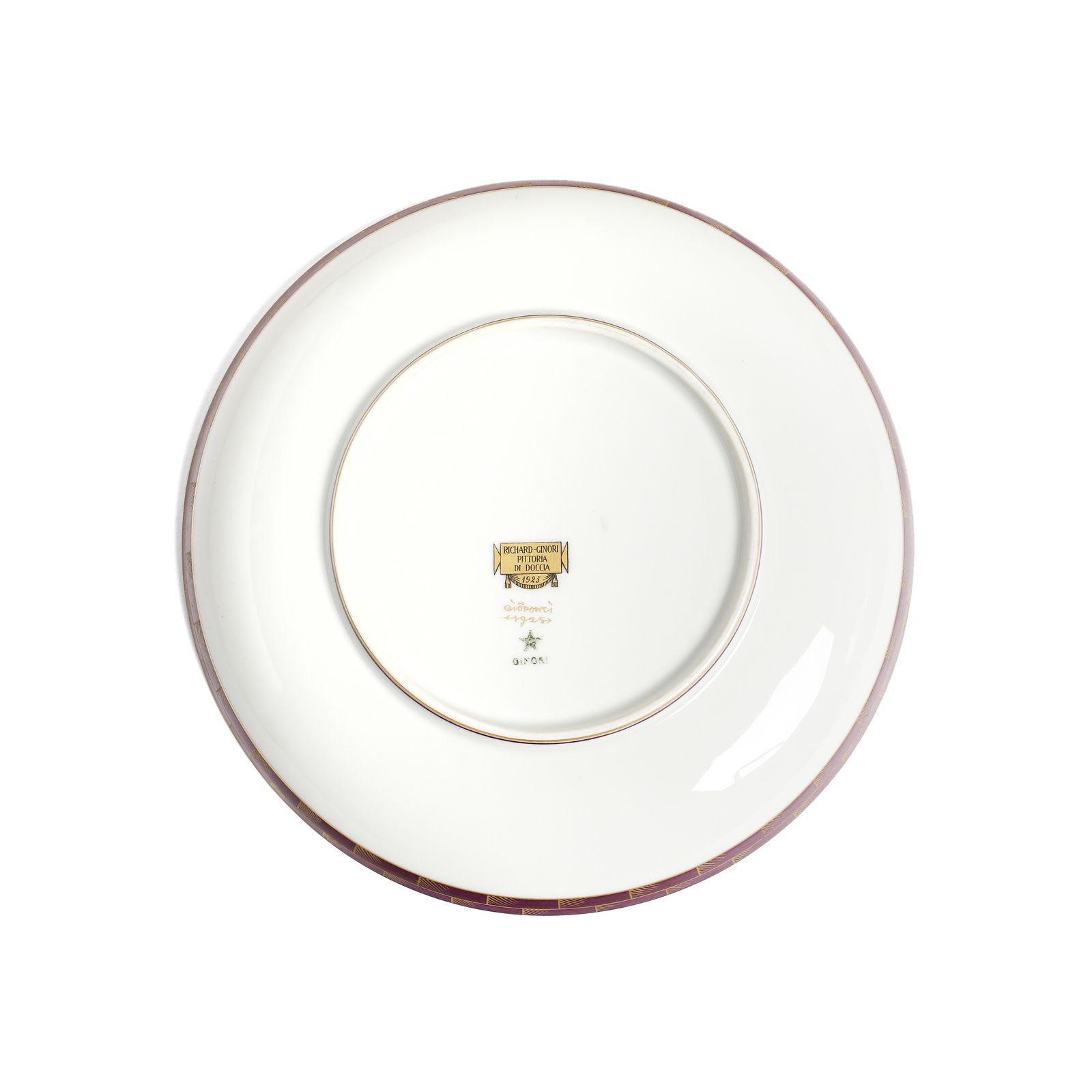 Marcato al verso'GINORI' in verde con la stella a cinque punte, cartiglio in oro della Pittoria di Doccia 1925, firmato in oro 'Gio Ponti 1925'.Bibliografia: G. Marangoni, Enciclopedia della moderne arti decorative. arti del fuoco: ceramica - vetri vetrate, vol. III, Ceschina, Milano 1926, tav.15. . Portoghesi, A. Pansera, Gio Ponti alla manifattura di Doccia, Sugarco Edizioni, Milano 1982, p. 54. U. La Pietra (a cura di), Gio Ponti, Rizzoli, Milano1995. p. 17. L. Frescobaldi Malenchini, M. T. Giovannini, O. Rucellai (a cura di), Gio Ponti. La collezione del Museo Richard-Ginori della Manifattura di Doccia, Maretti, Firenze 2015, pp. 240-241, cat. 157