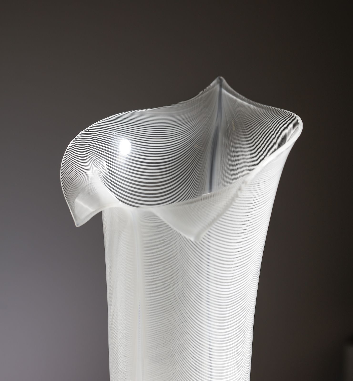 Disegno n. 3861 del Catalogo Rosso Venini. Firmato a punta sotto la base 'Venini italia 83'.Bibliografia: M. Barovier e C. Sonego (a cura di), Paolo Venini e la sua fornace, Skira, Murano 2016, p. 382. A. Venini Diaz de Santillana, Venini. Catalogo ragionato 1921-1986, Skira, Milano 2000, pp. 220, 276