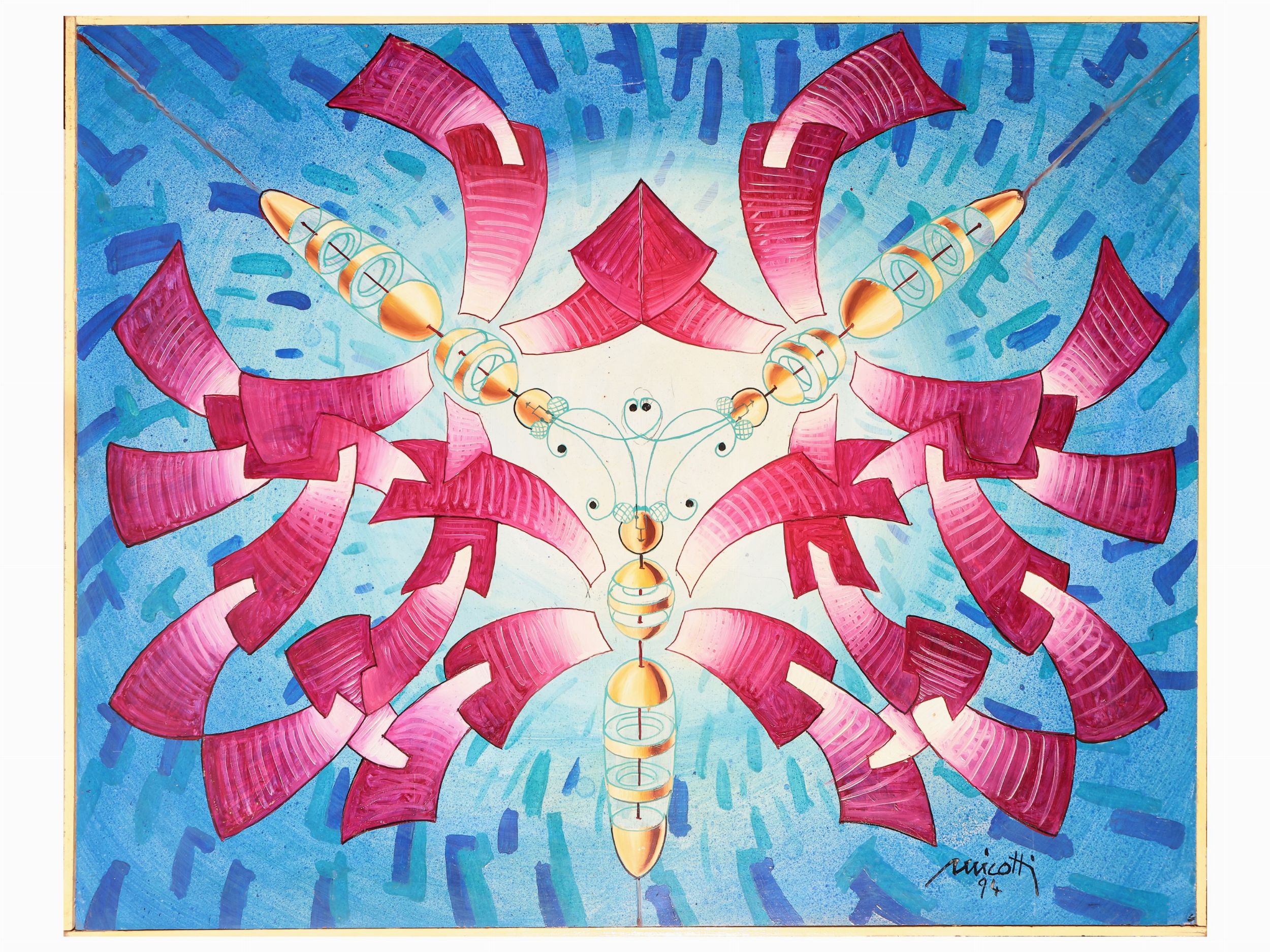 acrilico e spray su tavoletta, firmato e datato, in cornice