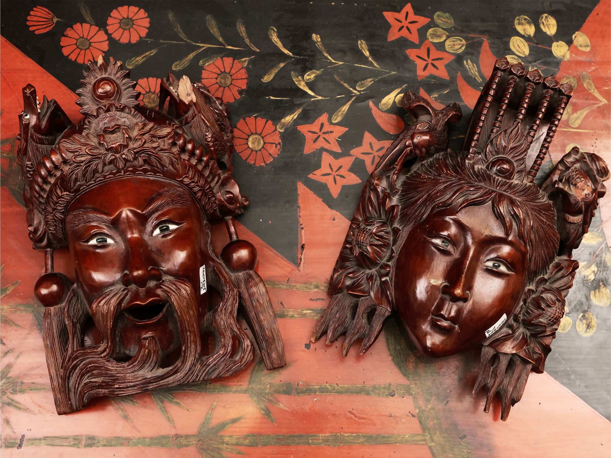 Coppia di maschere in mogano, Cina
