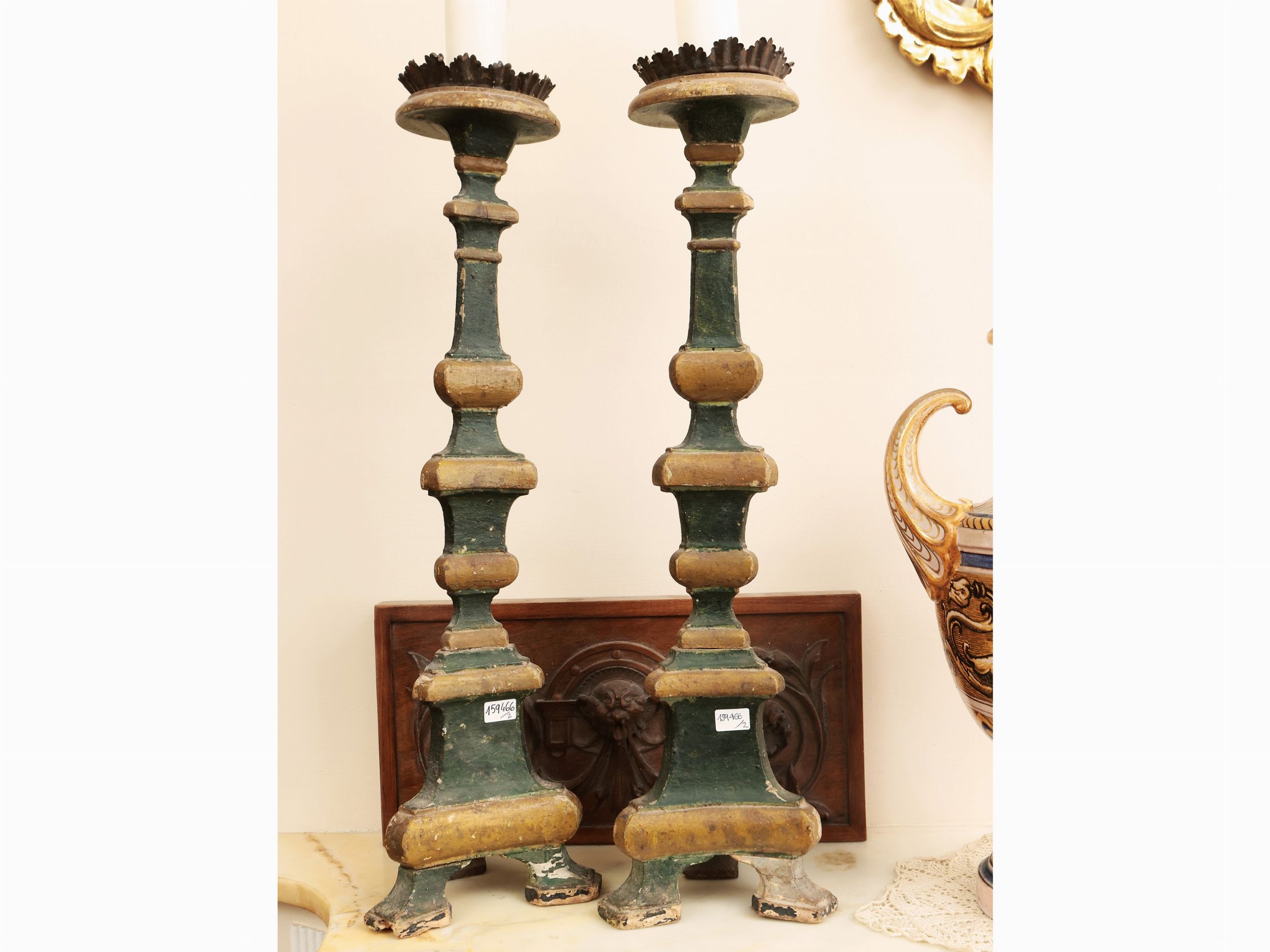 Coppia di torcere in legno laccato