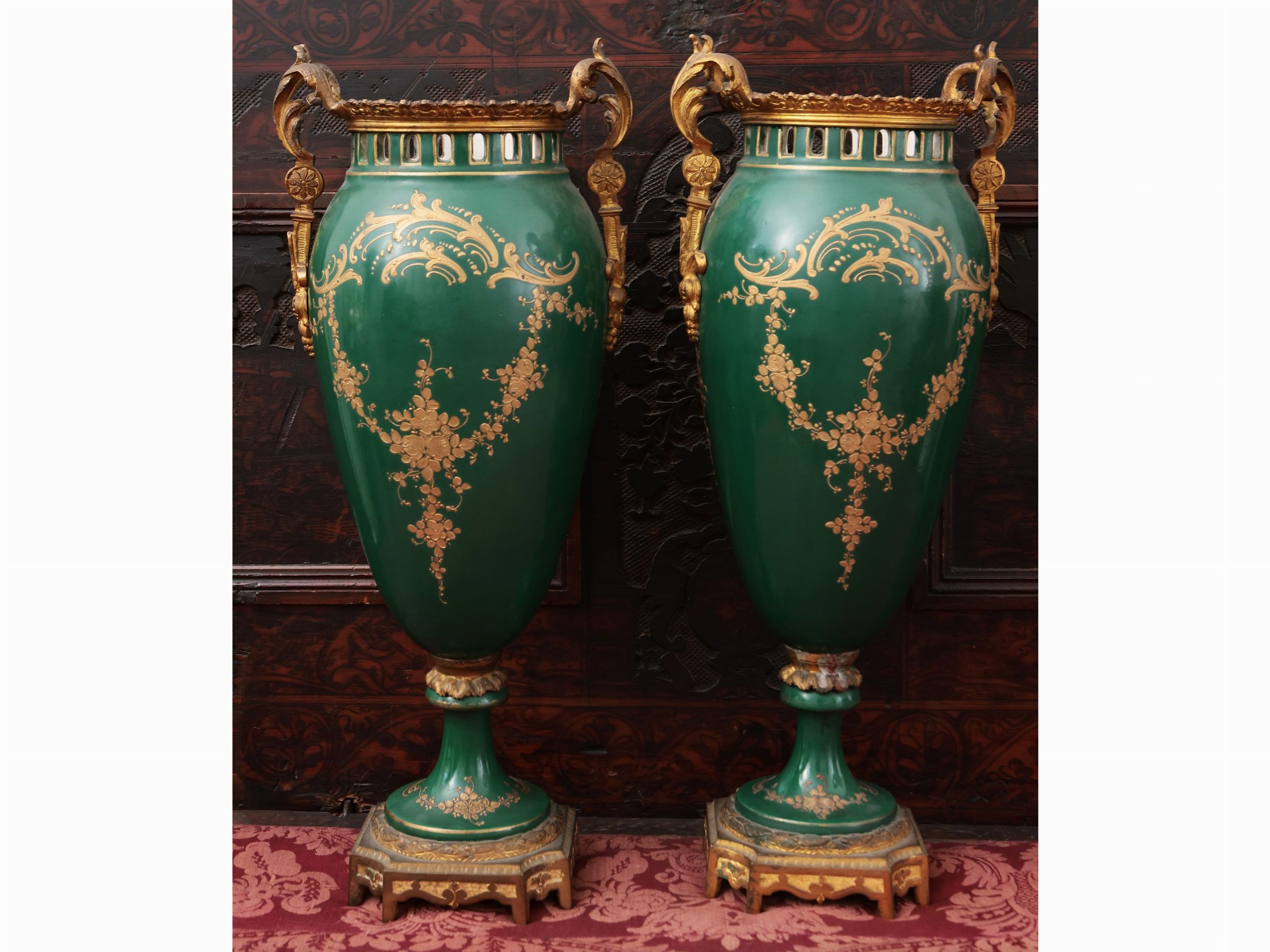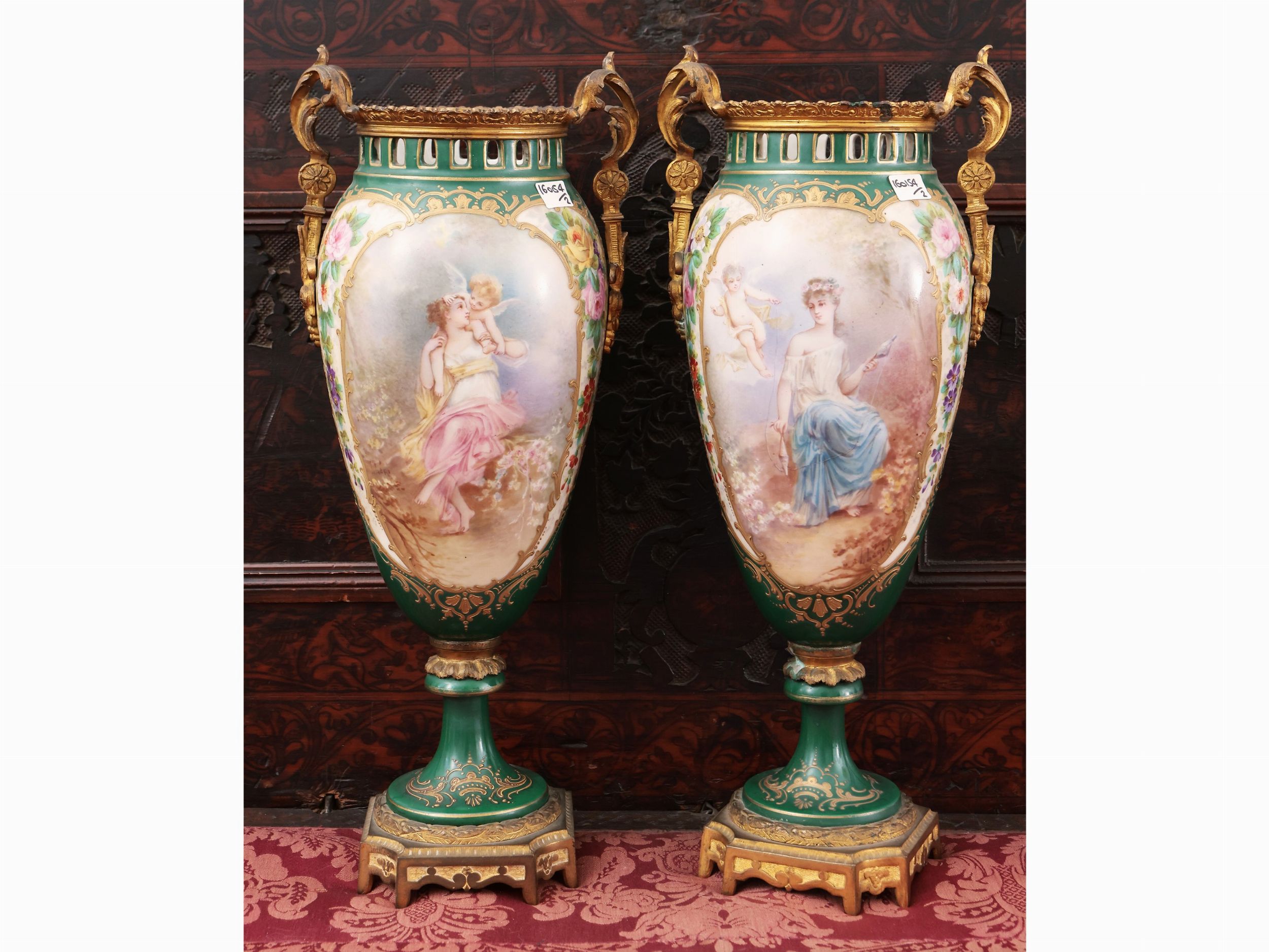 Coppia di vasi in porcellana e bronzo dorato, Sevres