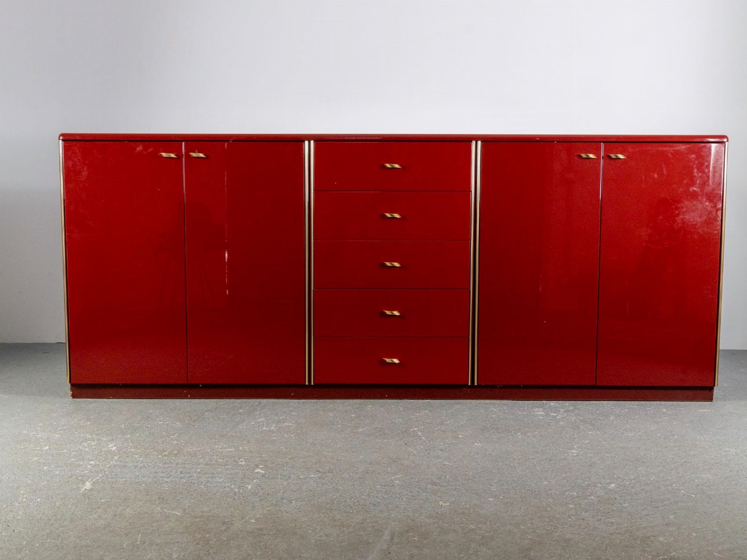 Italia, anni '80 composta da tre elementi di cui il centrale a cassetti, profili e maniglie in ottone. Lievi difetti di usura.