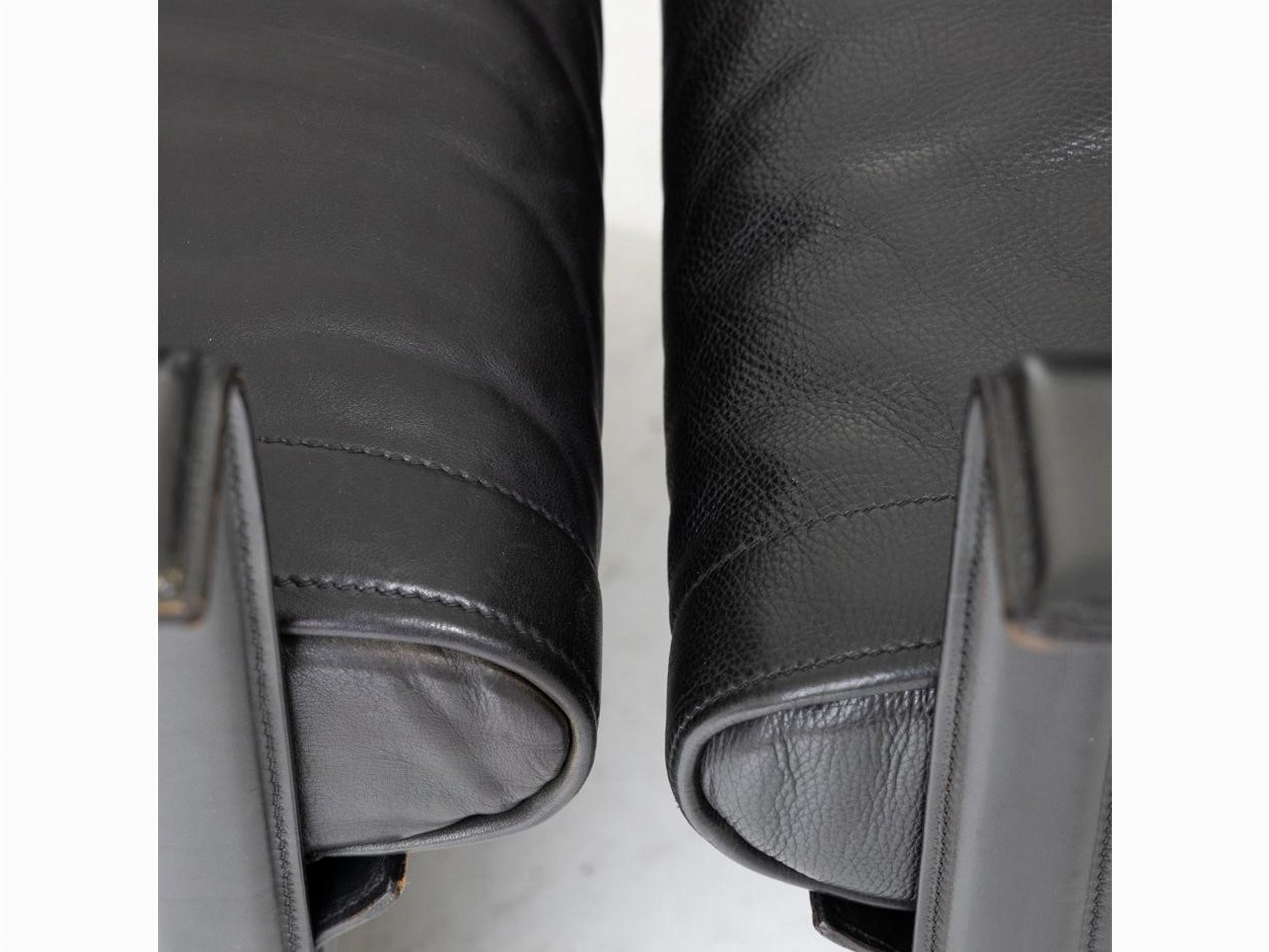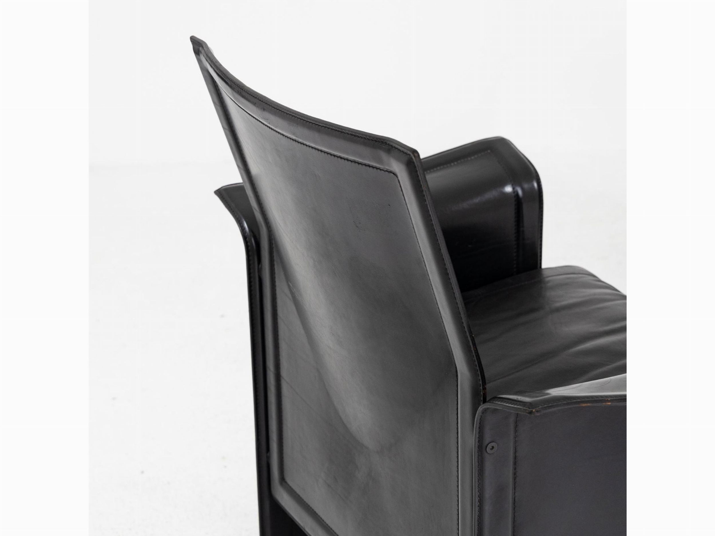 Italia, anni '70 in cuoio e metallo. Segni di normale usura e uno dei cuscini rifatto.