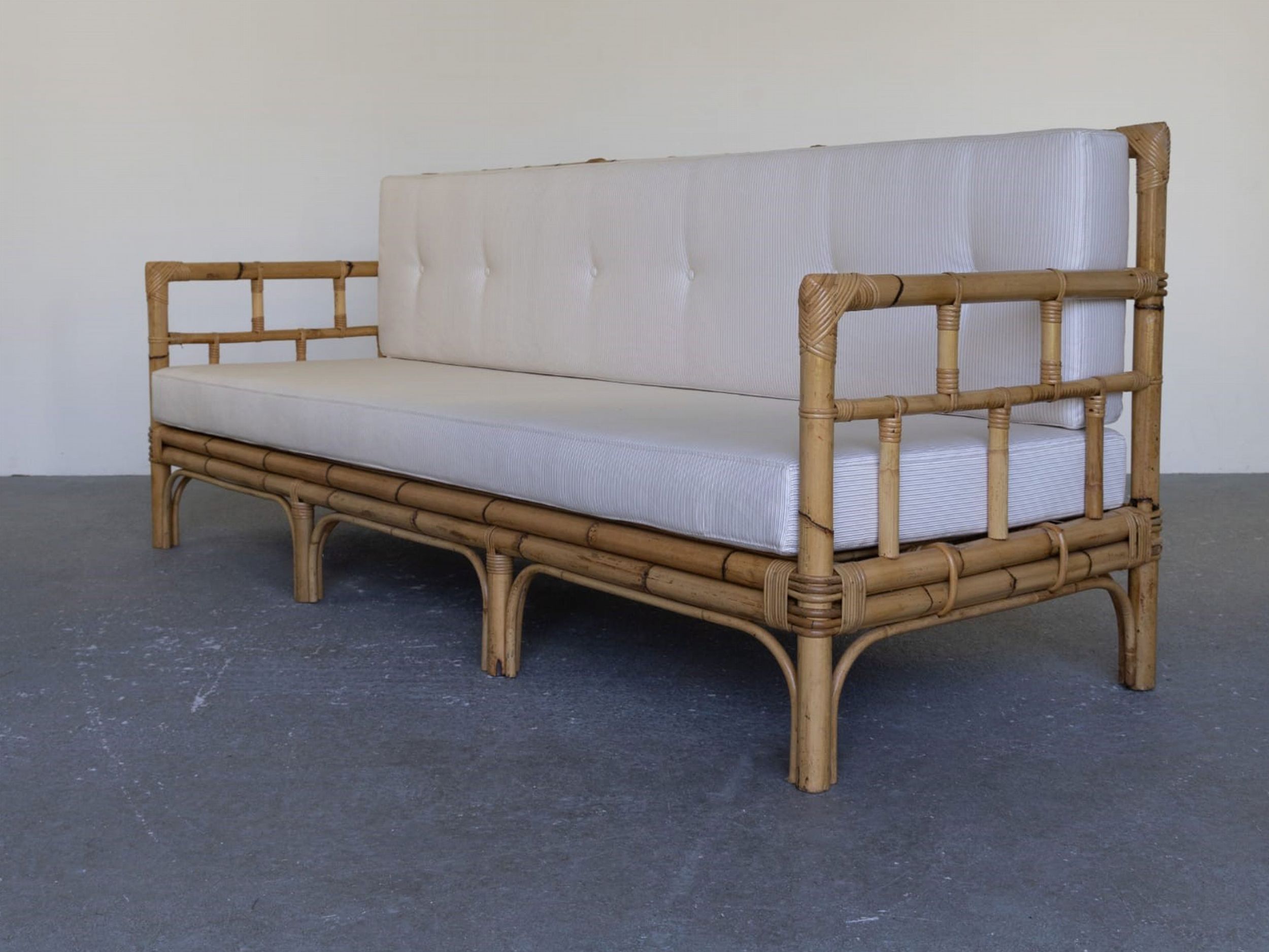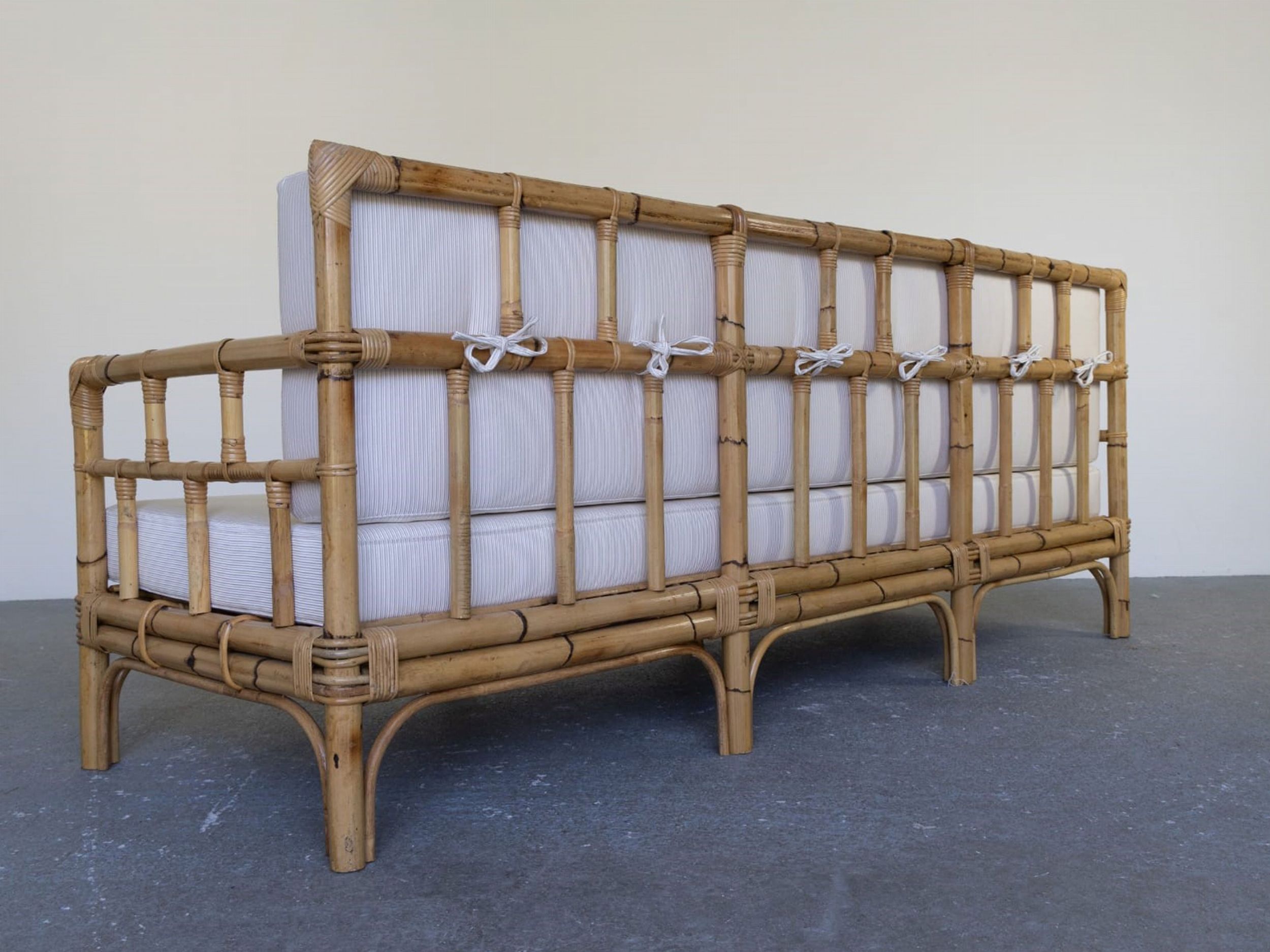 Italia, anni '70 in vimini e bambù con imbottiture completamente rinnovate in tessuto neutro.