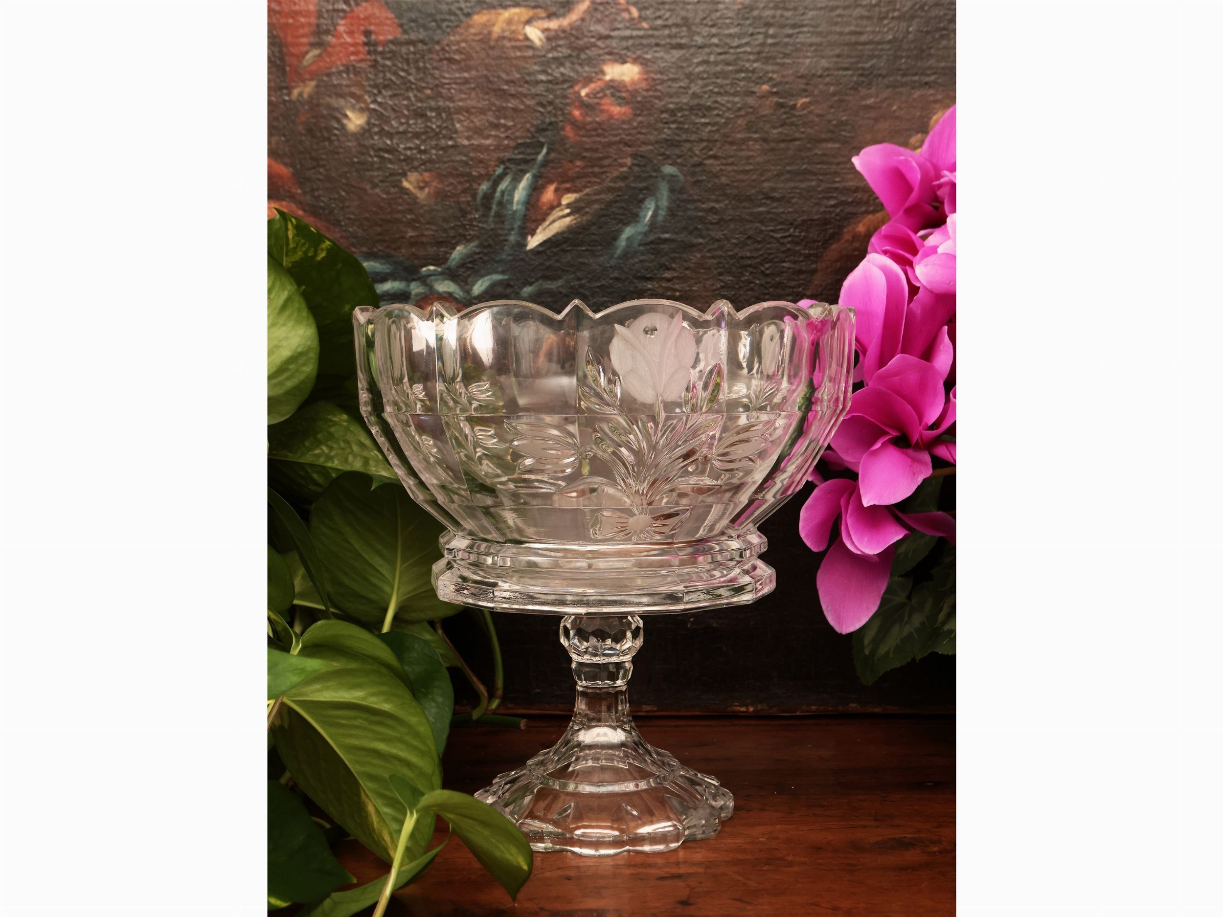Grande alzata centrotavola in cristallo molato