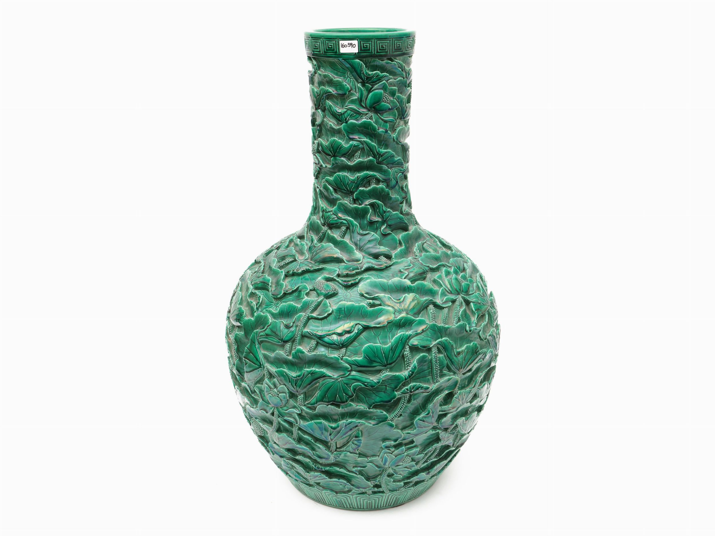 Cina, XX secolo interamente decorato in rilievo con fiori di loto, lievi difetti