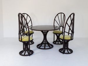 tavolo h cm 75, diam cm 111, sedie h cm 127 (5) Italia, anni '60 sedute con tessuto nuovo e lievi segni di usura [..]