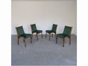 h cm 85x48x57 (4) Italia, anni '60 seduta e schienale imbottiti in velluto verde. Non presentano difetti.
