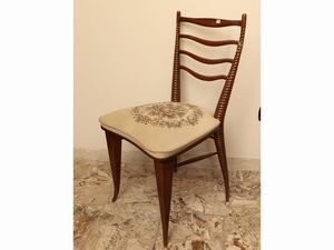 h cm 89x46x46 Anni Cinquanta - Sessanta schienale sagomato con montanti a torchon (uno con difetto), seduta imbottita [..]