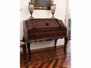 h cm90x110x57 metà del XVIII secolo intarsiato con filettature in altre essenze, calatoio a celare scarabattolo [..]