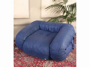 h cm 66x120x100 Italia, Anni Settanta in tessuto blu, apribile in letto singolo mediante cinghie, alcuni difetti [..]
