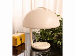 h cm 50, diam cm 43 base in metallo laccato bianco, paralume in metacrilato (con difetto)