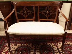 divanetto h cm 899x109x56,5, sedie h cm 88x51x43 (3) fine del XVIII/inizio del XIX secolo schienale bipartito [..]
