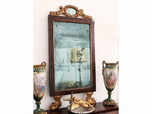 cm 93x45,5 inizio del XIX secolo cimasa centrata da ghirlanda di fiori tra volute contrapposte, specchio coevo, [..]