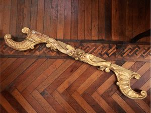 h cm 24x138x5,5 metą del XVIII secolo realizzato a doppia voluta, centrato da mascherone, alcuni difetti