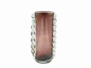 h cm 33x15 Murano, Venezia XX sec. con bolle all'interno e applicazioni a caldo di morise laterali iridate.