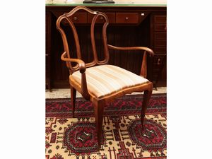 h cm 89x57x49 Anni Cinquanta - Sessanta schienale sagomato con cartella traforata tripartita, braccioli a giorno, [..]