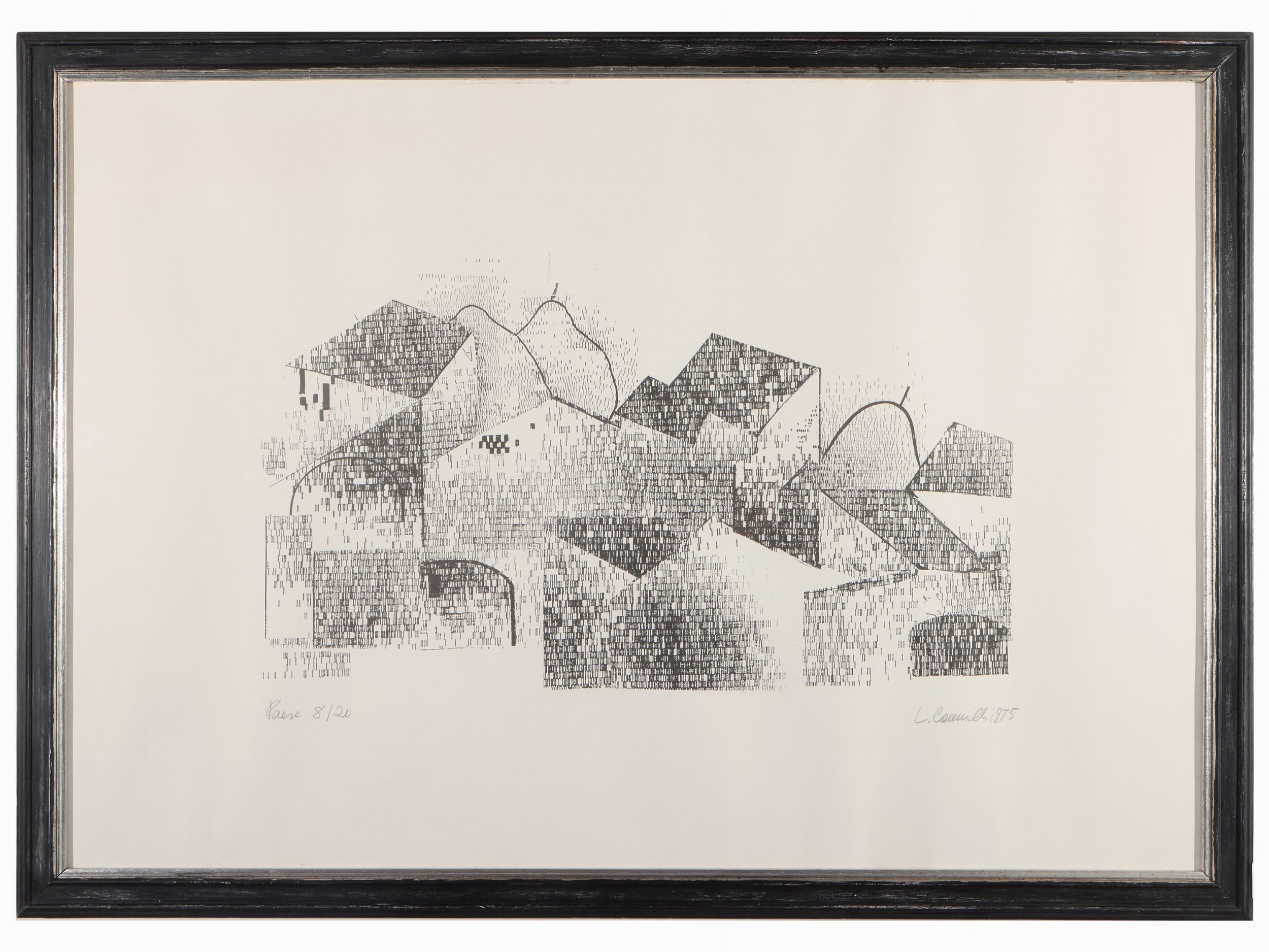 XX secolo firmate L. Cammilli: Paesaggio con luna, litografia, es p.d.a, in cornice, foglio cm 38,5x30; Case in Toscana 1977, litografia, titolata, datata e firmata, in cornice, matrice cm 15x40 foglio cm70x50; Paese 1975 litografia, es 8/20, titolata, datata e firmata, in cornice foglio cm 50x70; Case e ulivi 1999 acquaforte, siglata, titolata, datata e firmata, in cornice, foglio cm 39x29